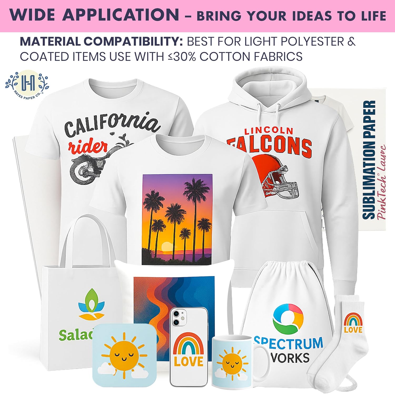 - Professional-Quality Sublimation Results – Hayes Sublimation Paper is specially engineered for seamless transfers using sublimation ink and heat. Inks permanently bond into polyester surfaces for vibrant, fade-resistant, machine-washable prints that won’t peel or crack.