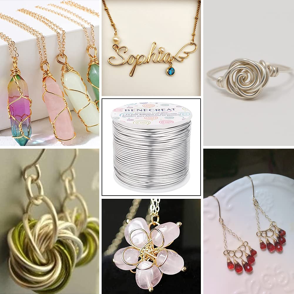 BENECREAT 15 Gauge 220Feet Soft Aluminum Wire Anodized Jewelry Craft Making Beading Floral Colored Aluminum Craft Wire for Gem Wrapping, Jewelry Craft Making - Silver
