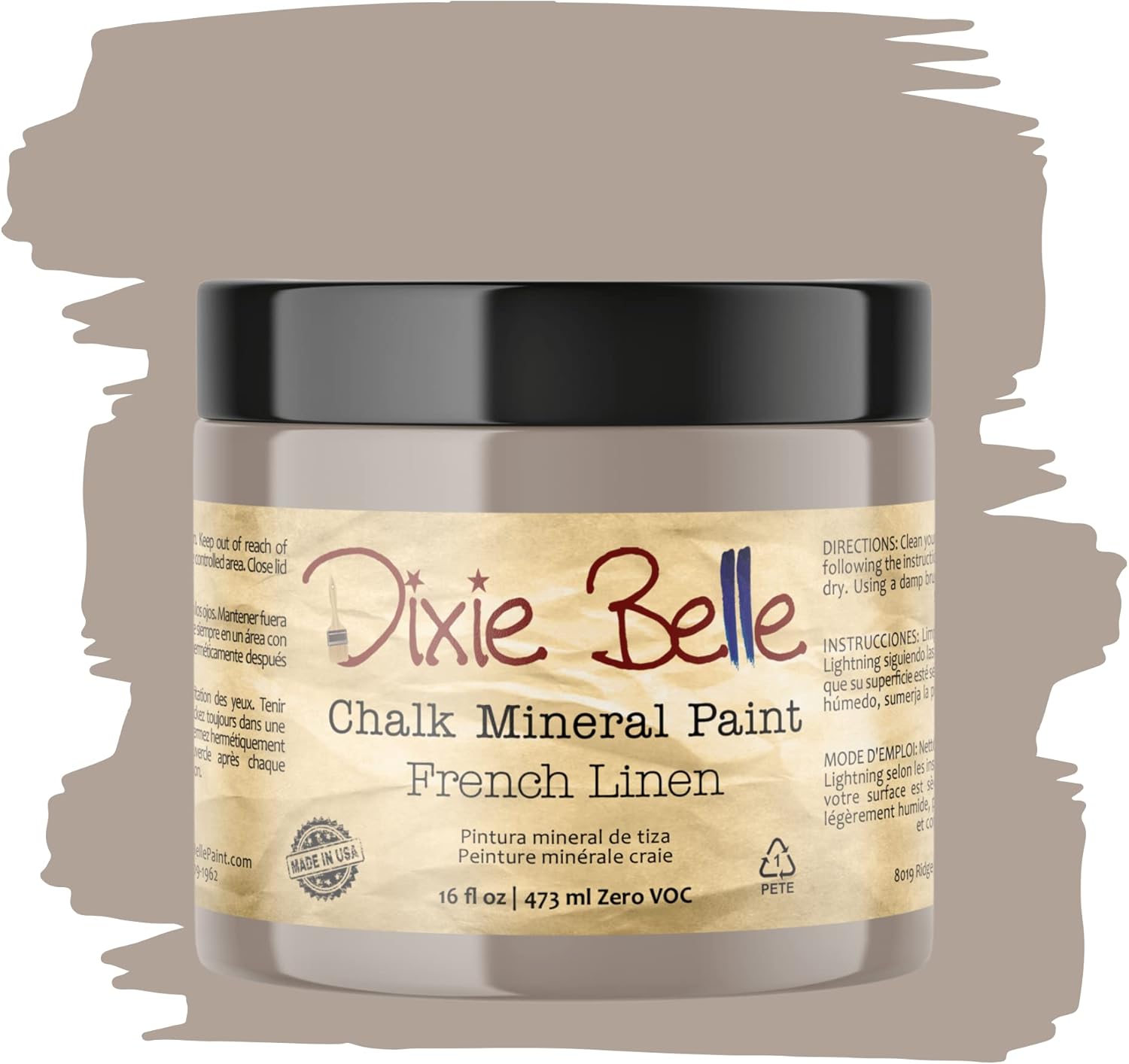 Dixie Belle Paint Company Chalk Finish Furniture Paint - French Linen (16oz) - Matte Light Taupe Chic Chalk Mineral DIY Furniture Paint
