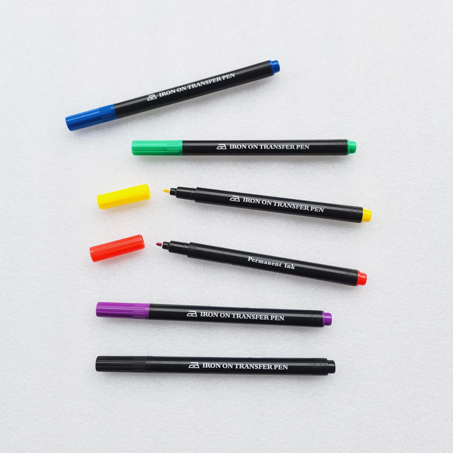 - Super Value Pack: Package contains 6 Iron On Transfer Pens (Black, Red, Blue, Yellow, Green, Purple)