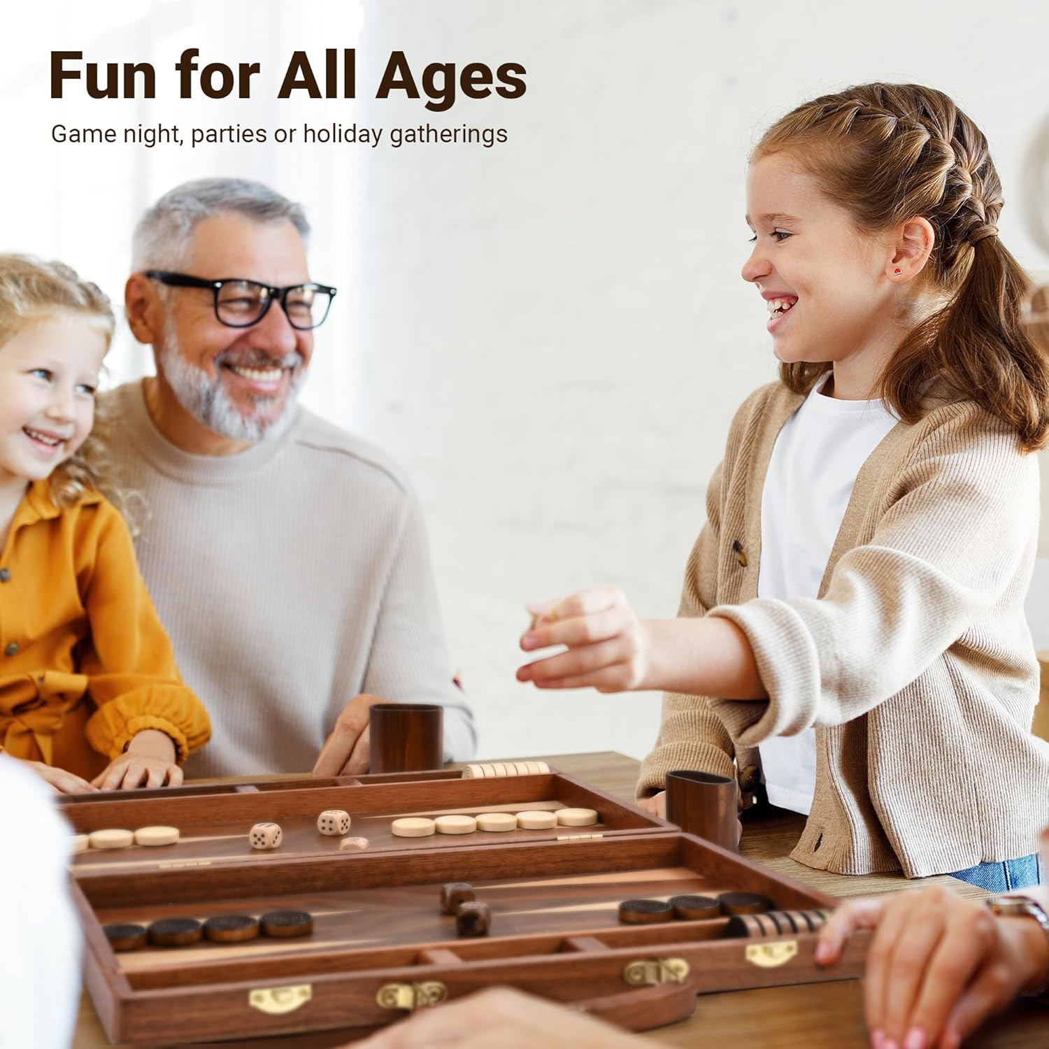 ropoda Sapele Wood Backgammon Board Game Set (15 Inches) for Adults and Kids - Classic Board Strategy Game - Portable and Travel Backgammon Set with Wooden Playing Pieces and Accessories