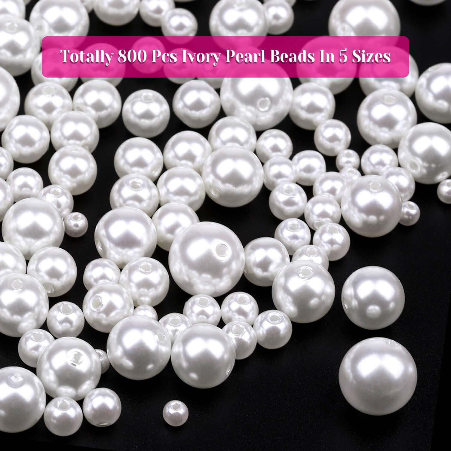 - PEARLS: Package comes with 800 pieces ivory pearl beads in 5 different sizes, Perfect for jewelry making, crafts, decoration and vase filler