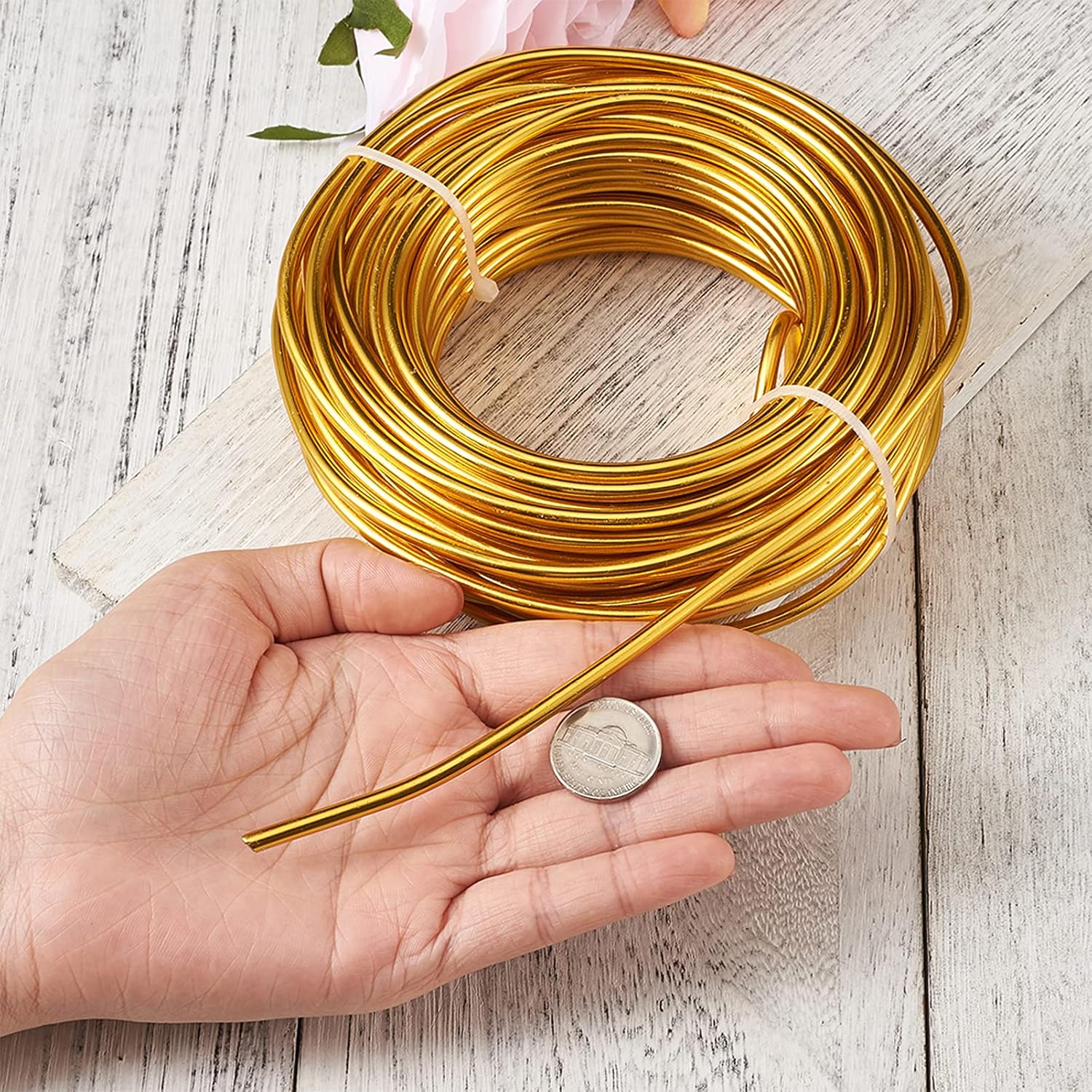 Fashewelry 52 Feet 4mm Gold Aluminum Wire Bendable Metal Craft Wire for Beading Sculpting Jewelry Making