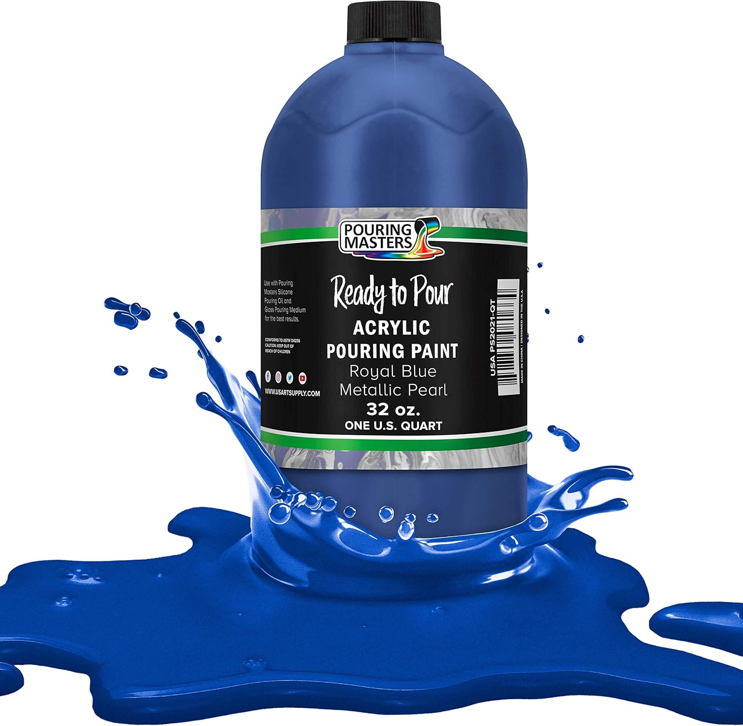 Pouring Masters Royal Blue Metallic Iridescent Pearl Ready to Pour Acrylic Pouring Paint - Premium 32-Ounce Pre-Mixed Fluid Acrylic Paint - Fluid Art Supplies for Canvas, Wood, Paper, Tile & Rocks