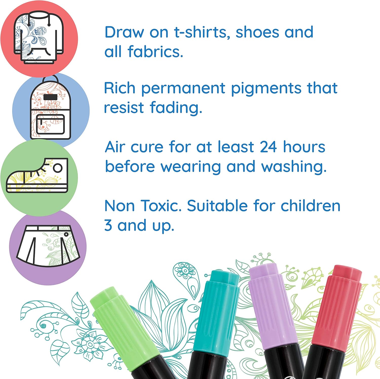 - Unlimited Uses: Let your imagination run wild when using these fabric markers as you can decorate everything from T-shirts, clothing, shoes, bags, place-mats to baby items like bibs! Use them to show off your creative side and produce your own stunning artwork!