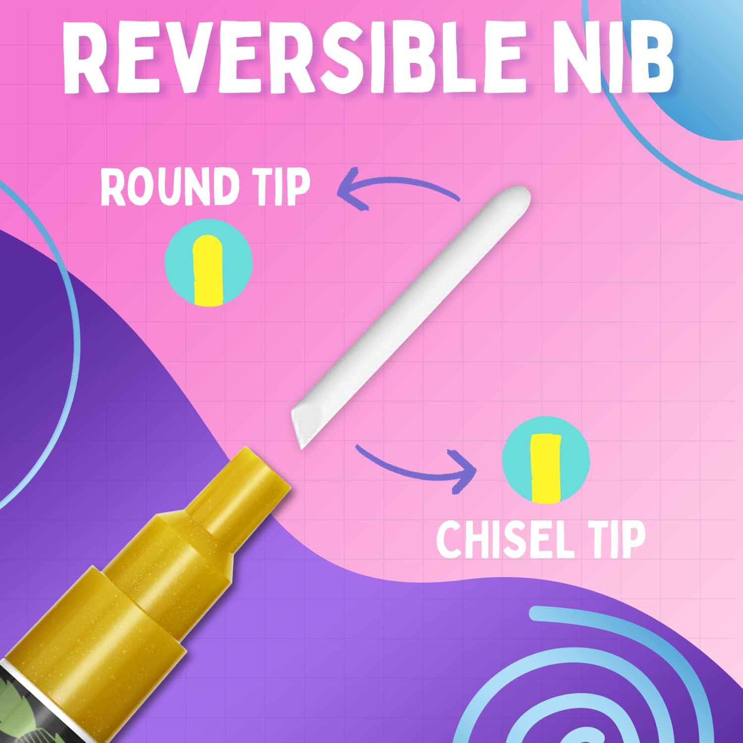 Metallic Liquid Chalk Markers Fine Tip - Dry Erase Marker Pen for Chalkboard Signs, Windows, Blackboard, Glass - 3mm Reversible Tip (10 Pack)