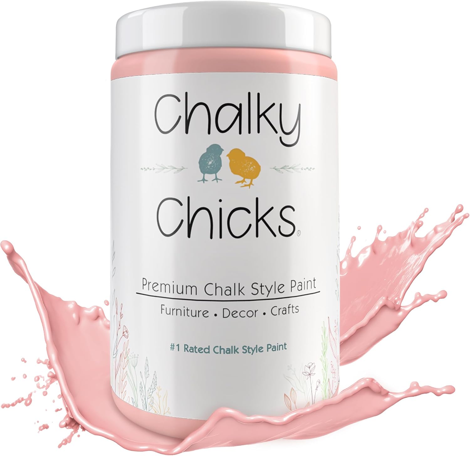 Chalky Chicks All-in-One Chalk Paint for Furniture or Cabinet - 32 Fl Oz - Matte Finish Sweet 16 (Pink) for Metal, Wood Furniture Paint - No Sanding All-in-One for Home Decor & Crafts, USA Made