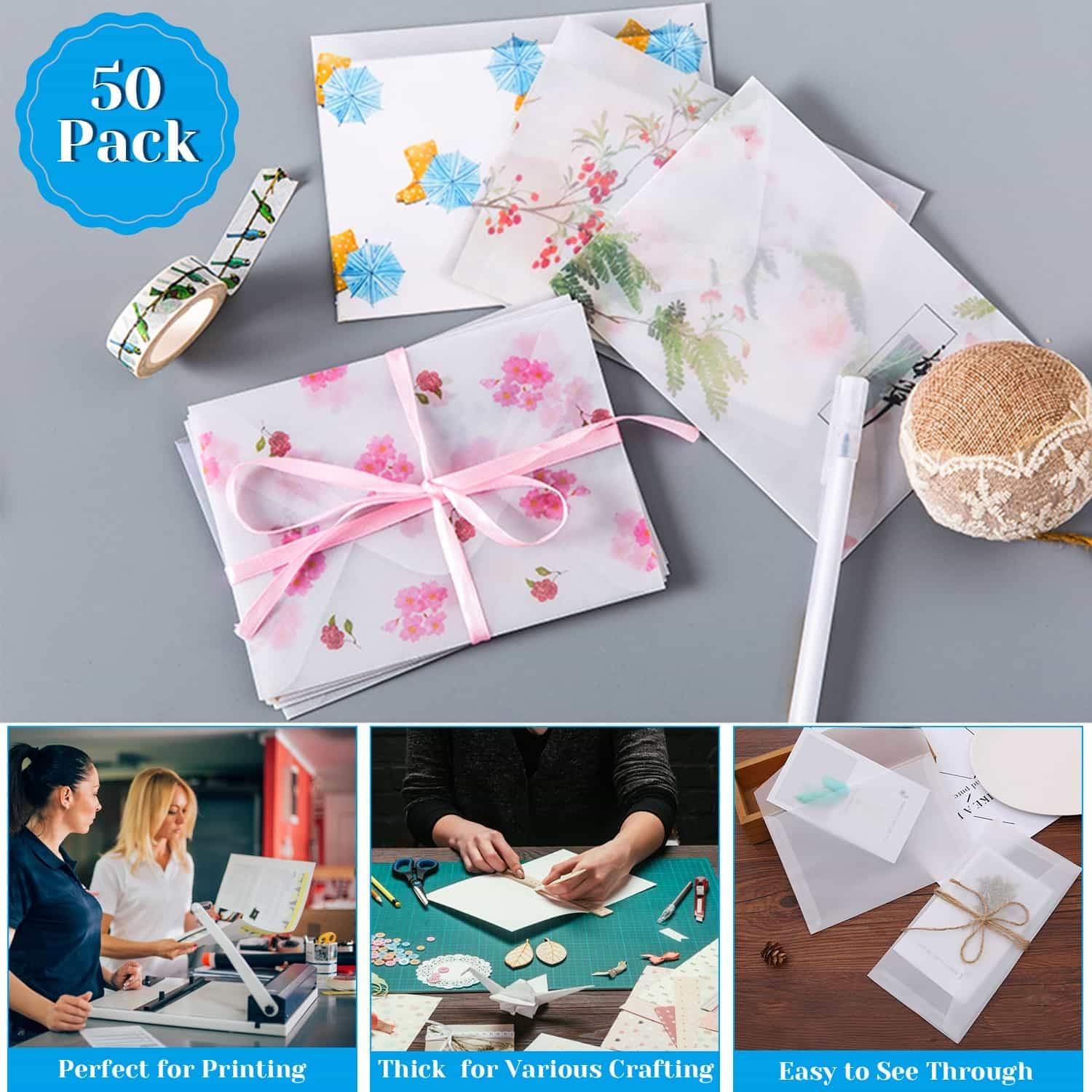 - Thick Vellum Paper: Cridoz vellum papers come with 50 sheets 115GSM thick vellum sheets. Great for wedding invitations, party invitations card insert tissue, table numbers cards, photo overlays, scrapbooking and much more