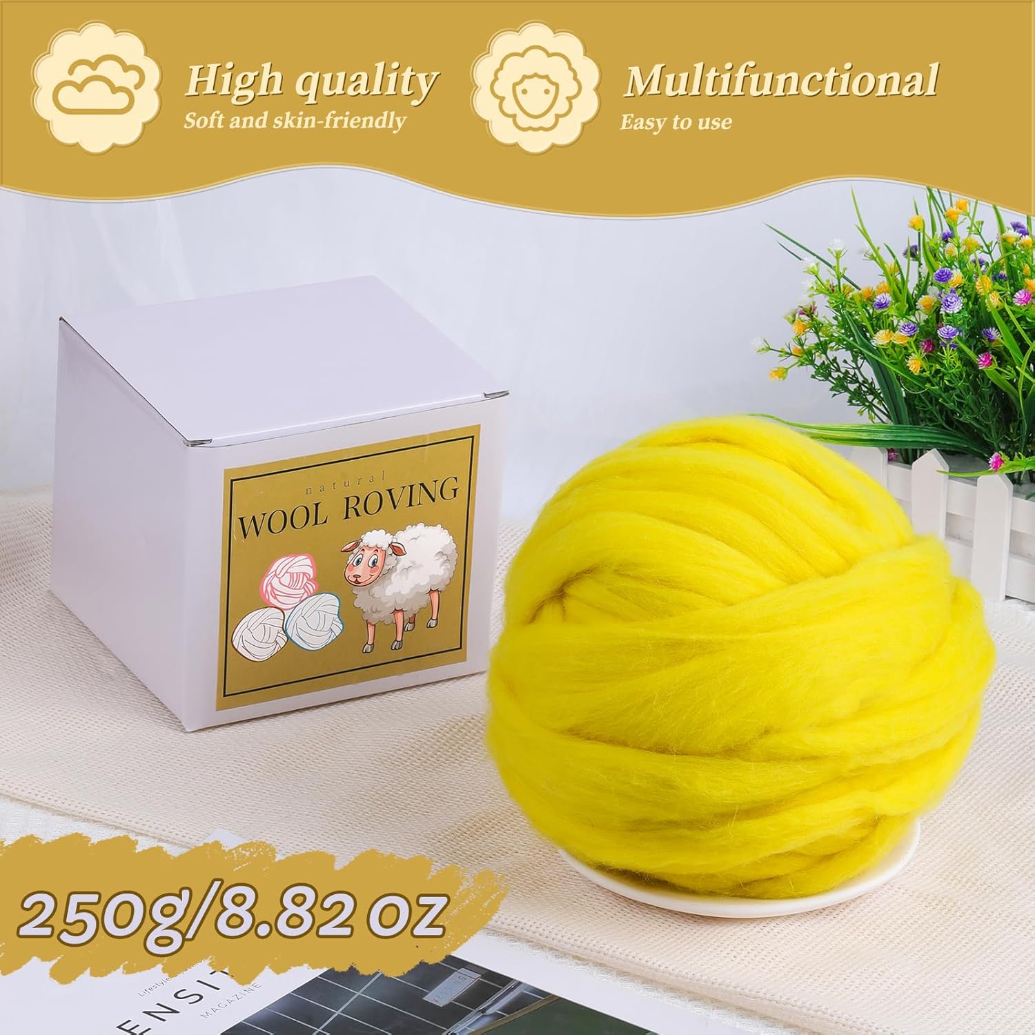 Wool Roving Bulk - 8.82oz Super Wool Chunky Yarn, Wool Roving Top for Needle Felting, Soft Felting Wool Supplies for Hand Spinning, Blending, Weaving and DIY Craft
