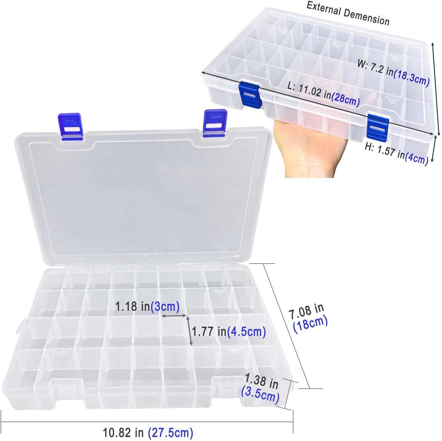 Qualsen Plastic Organizer Storage Box with Adjustable Dividers, Fishing Tackle Box and Bead Organizer Box for Jewelry, Beads, Earrings, Tools, Fishing Hooks, and Small Accessories(34 Grid x 3)