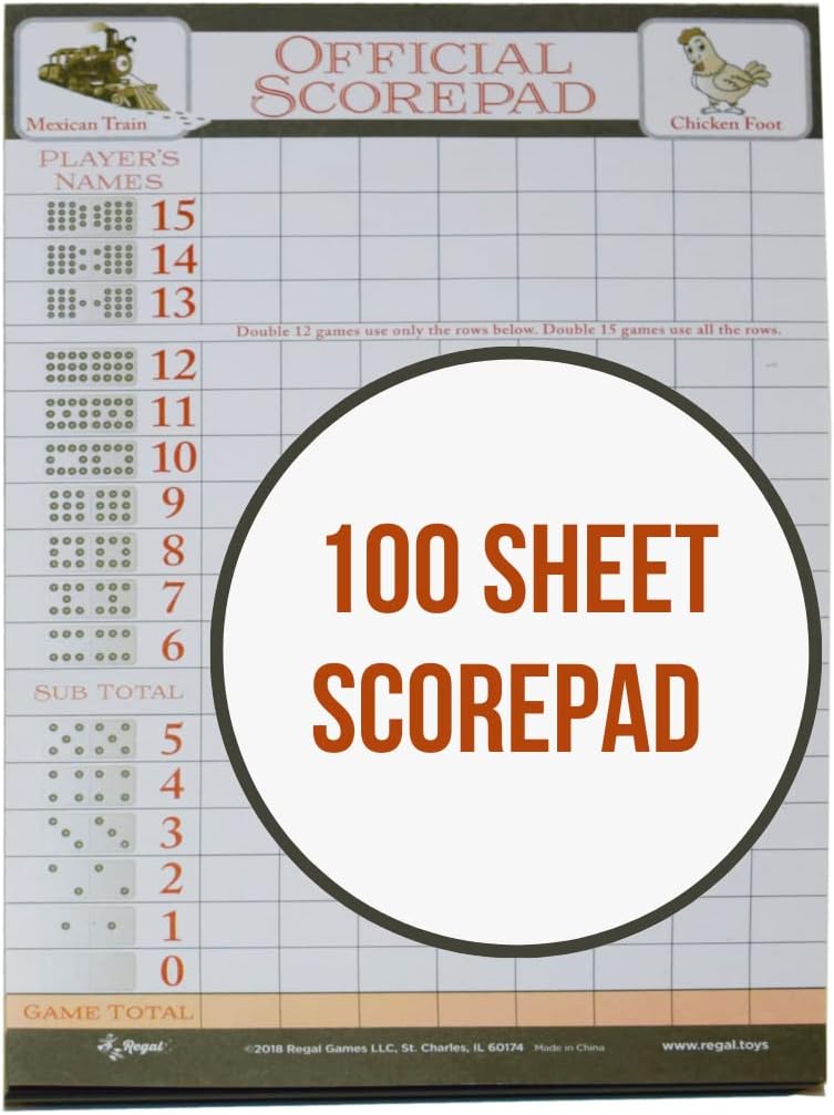 Regal Games Mexican Train Score Pads & Chicken Foot Dominoes Game for Adults - Ideal for Family Fun Game Night and Travel - 100 Sheets (8.25" x 5.5")