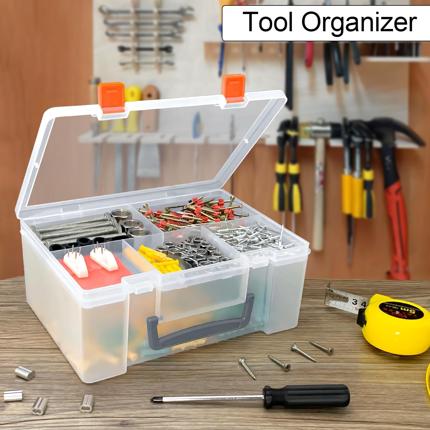- Effortless Portability: Equipped with sturdy handles, this organizer box makes carrying and organizing a breeze. Whether you're decluttering at home, packing for a camping trip, or moving to a new place, this tool box organizer is always ready to assist.