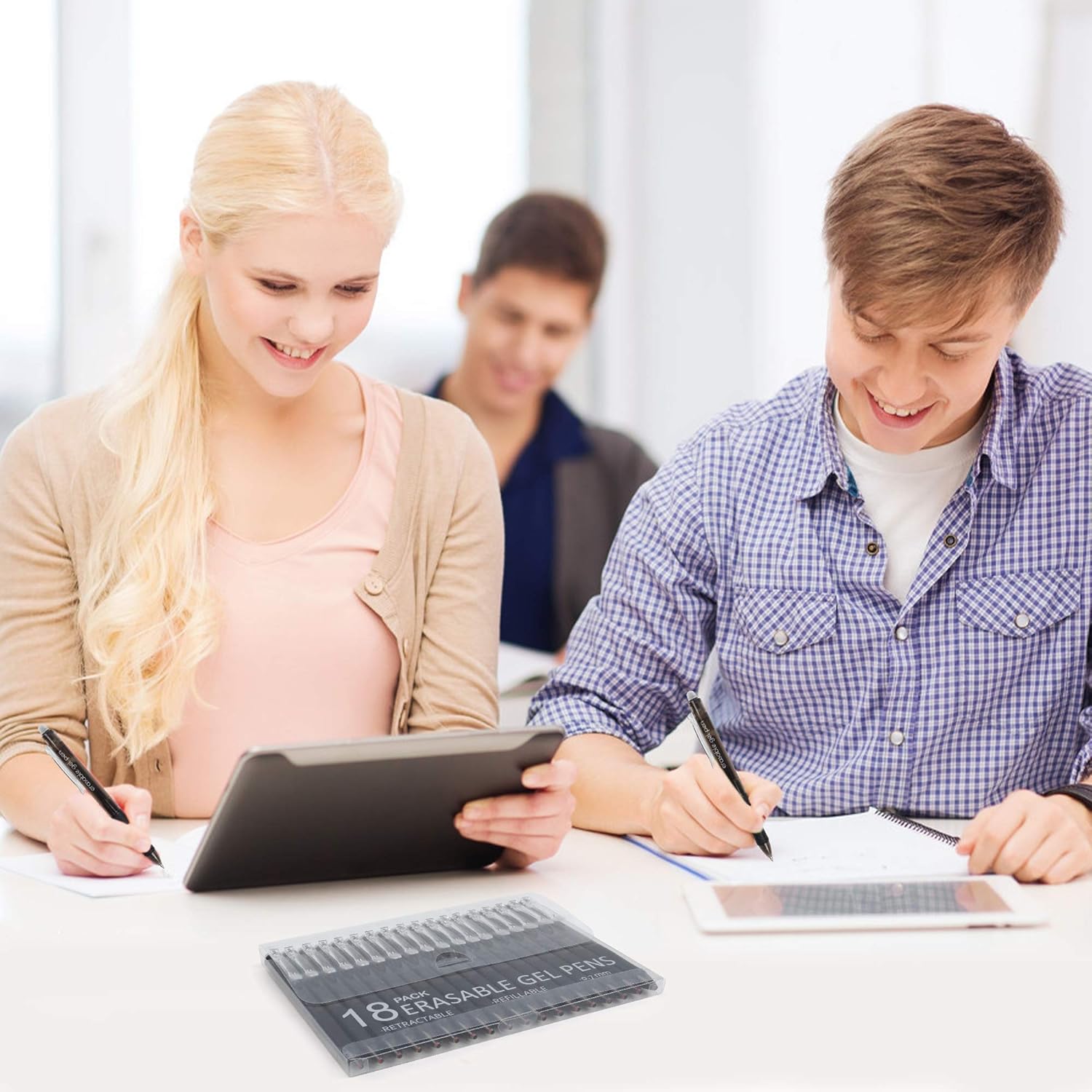 - 【Top Quality】: 18 black erasable gel pens with 0.7mm fine tip, superior ink and soft rubber grip make the pens writing smoothly and using durable! Great pens for note taking, kid doodling, sketching, writing and getting creative in a fun and skilled way.