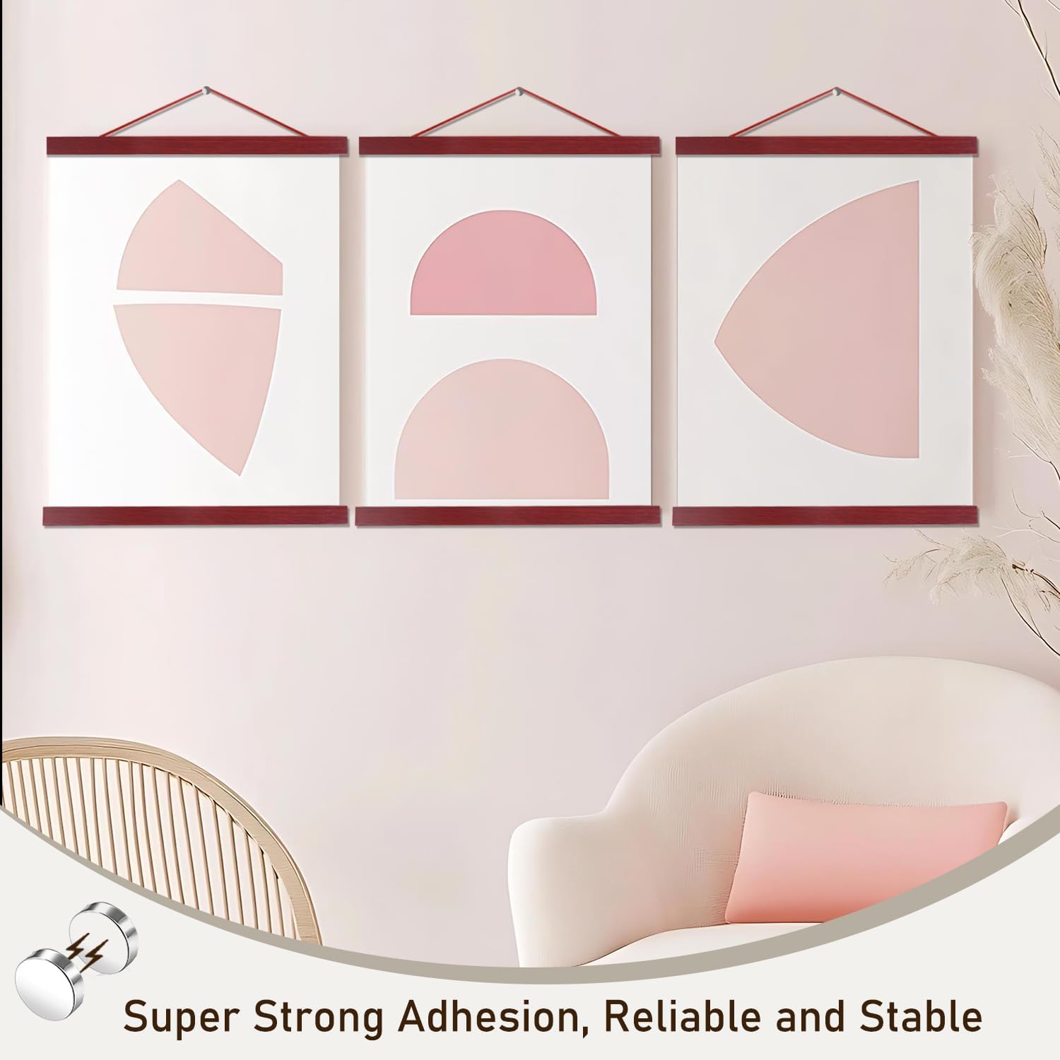 Artmag Magnetic Poster Hanger Frame, 17x22 17x24 17x31 Light Wood Wooden Magnet Canvas Artwork Print Poster Hangers Frames Hanging Kit (Mahogany, 17")