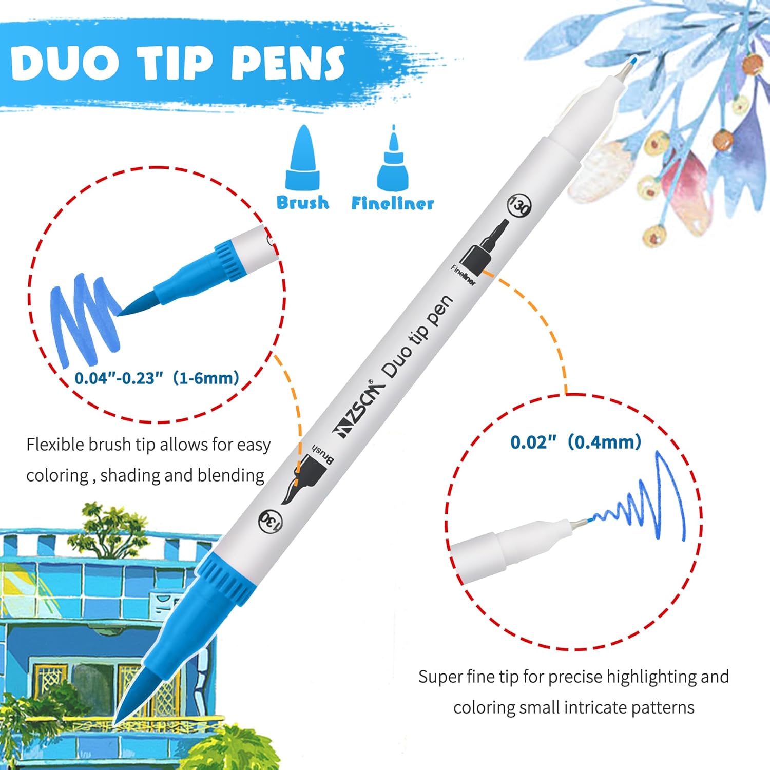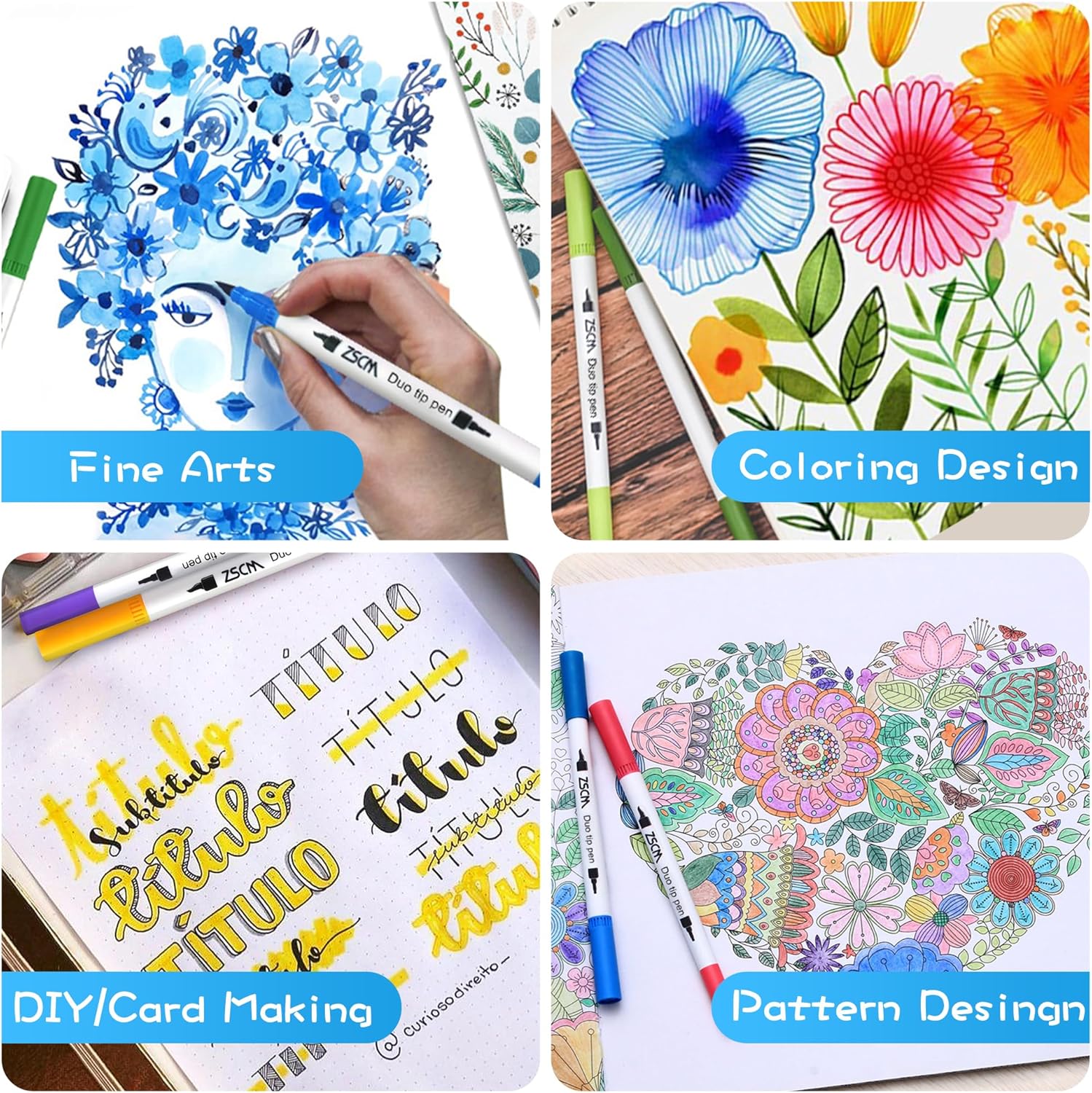 ZSCM 100 Colors Duo Tip Brush Markers Art Pen Set, Artist Fine and Brush Tip Colored Pens, for Adult Coloring Books Christmas Cards Drawing, Note taking Lettering Calligraphy Journaling