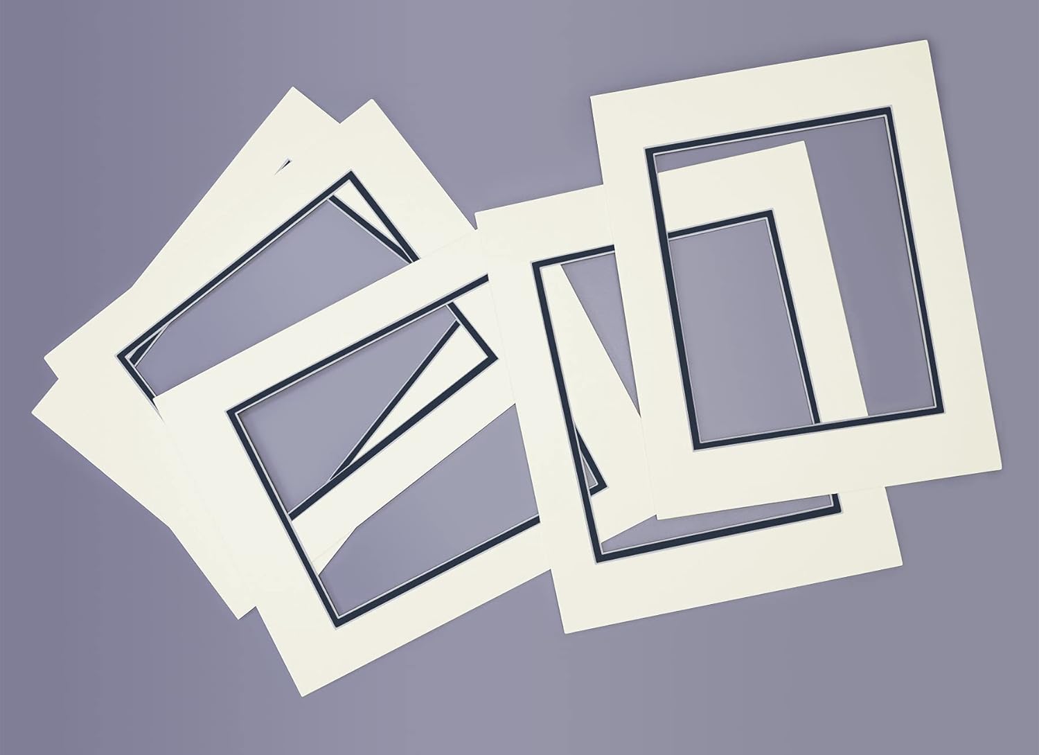 Golden State Art, 11x14 Double Mats for 8x10 - for Photos, Pictures, Frames - Acid-Free, 5 Pack, Ivory Turret Over Dignity Blue