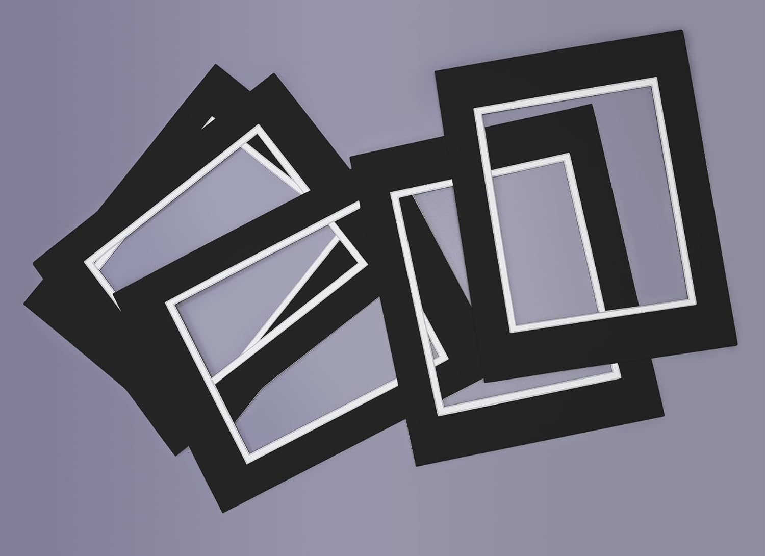Golden State Art, 11x14 Double Mats for 8x10 - for Photos, Pictures, Frames - Acid-Free, 5 Pack, Black Over White