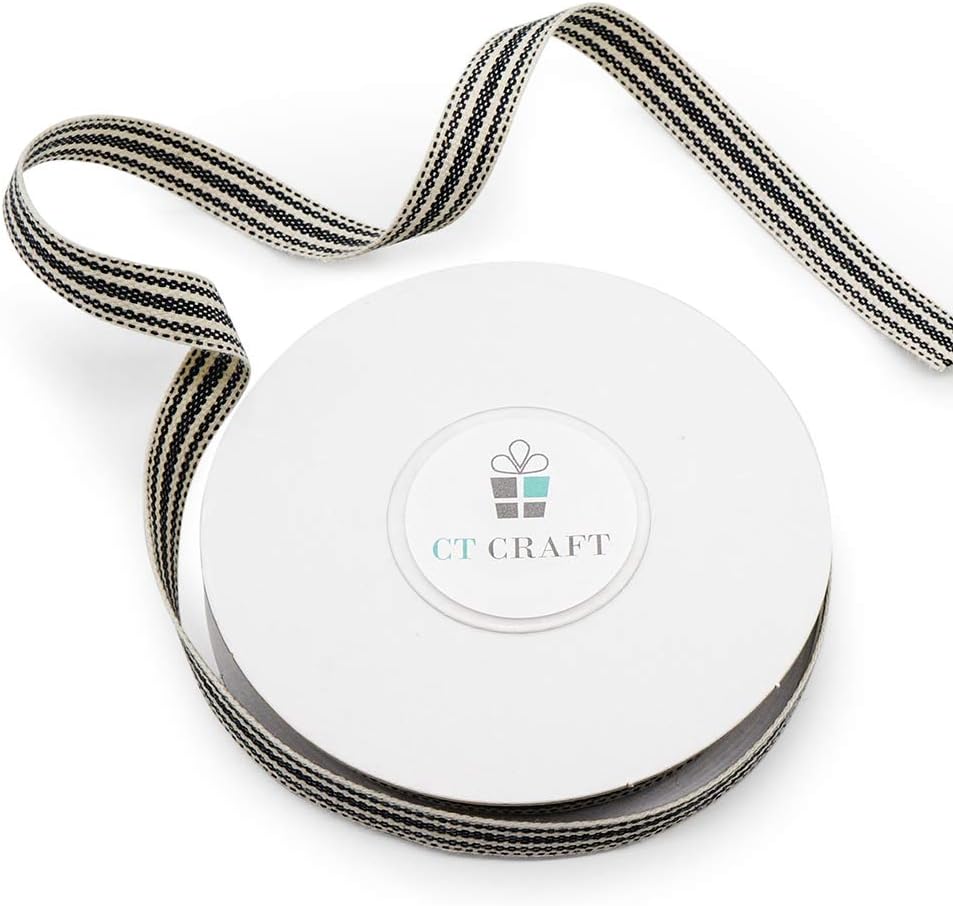 - SIMPLE YET ELEGANT - There is nothing that can accent your Craft better than our Ivory Cotton Black Stripes Ribbon 3/8" for crafts. This ribbon matches any type of gift wrapping paper and the texture not only adds to their premium quality. You'll appreciate the ease and finesse with which these Ivory Cotton Black Stripes Ribbon 3/8" glide through your fingers.