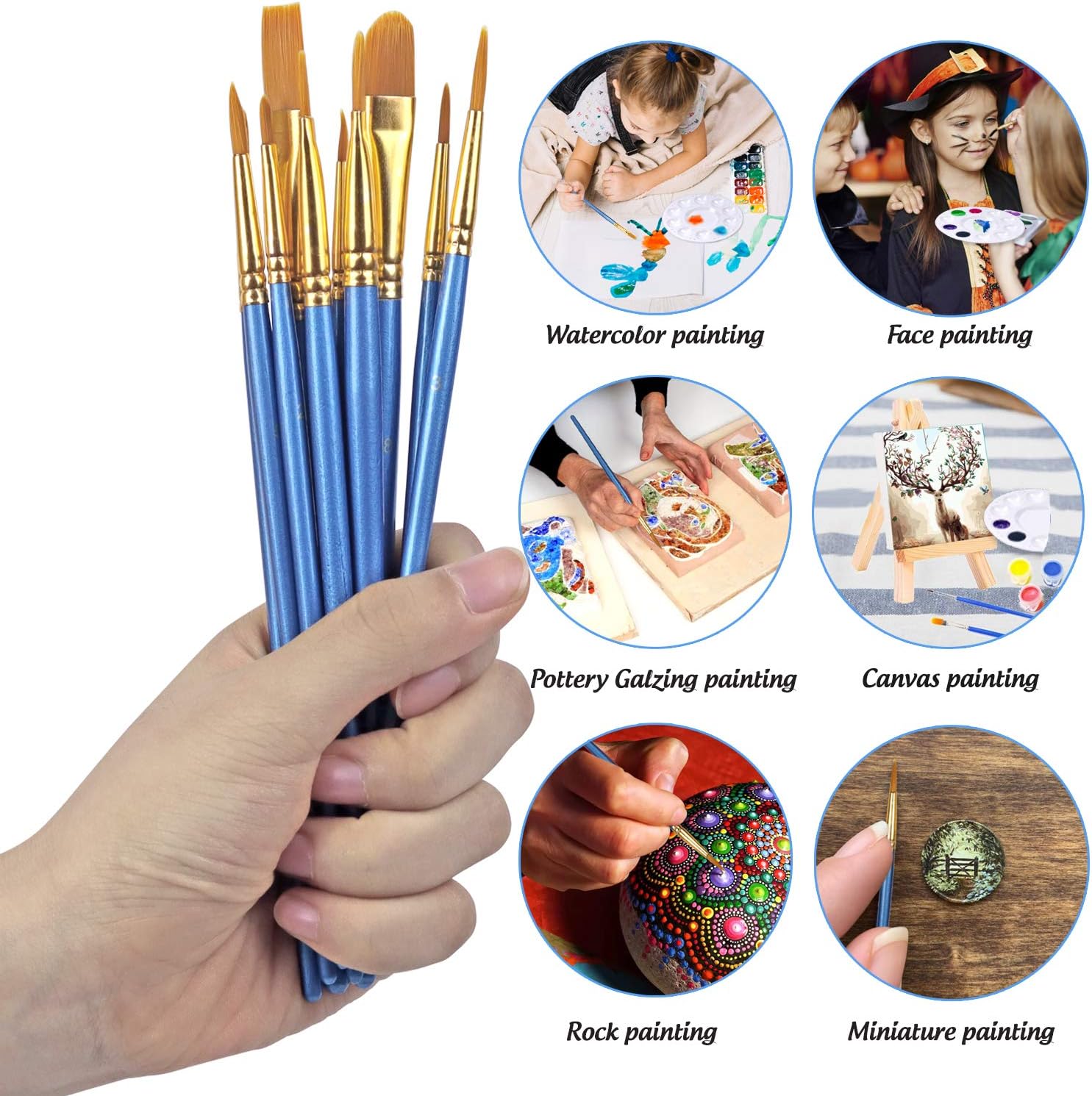 - Complete 20-piece Brush Collection: Get creative with two packs of 10 versatile art brushes each (20 total), featuring a variety of round, flat, filbert, and angular shapes in assorted sizes. Perfect for artists and hobbyists exploring different techniques.