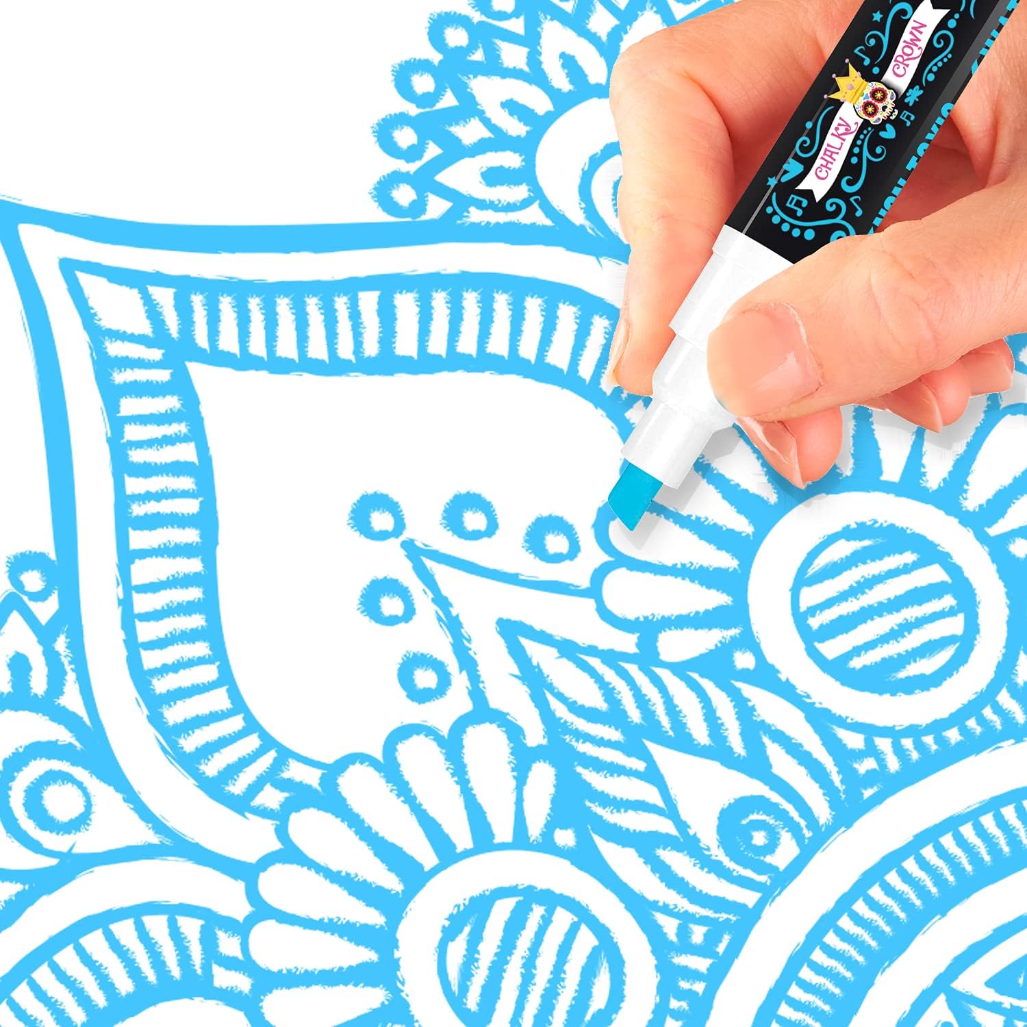 CHALKY CROWN Liquid Chalk Marker Pen - Dry Erase Marker - Chalk Markers for Chalkboard Signs, Windows, Blackboard, Glass - 6mm Reversible Tip (Blue, 5 Pack)