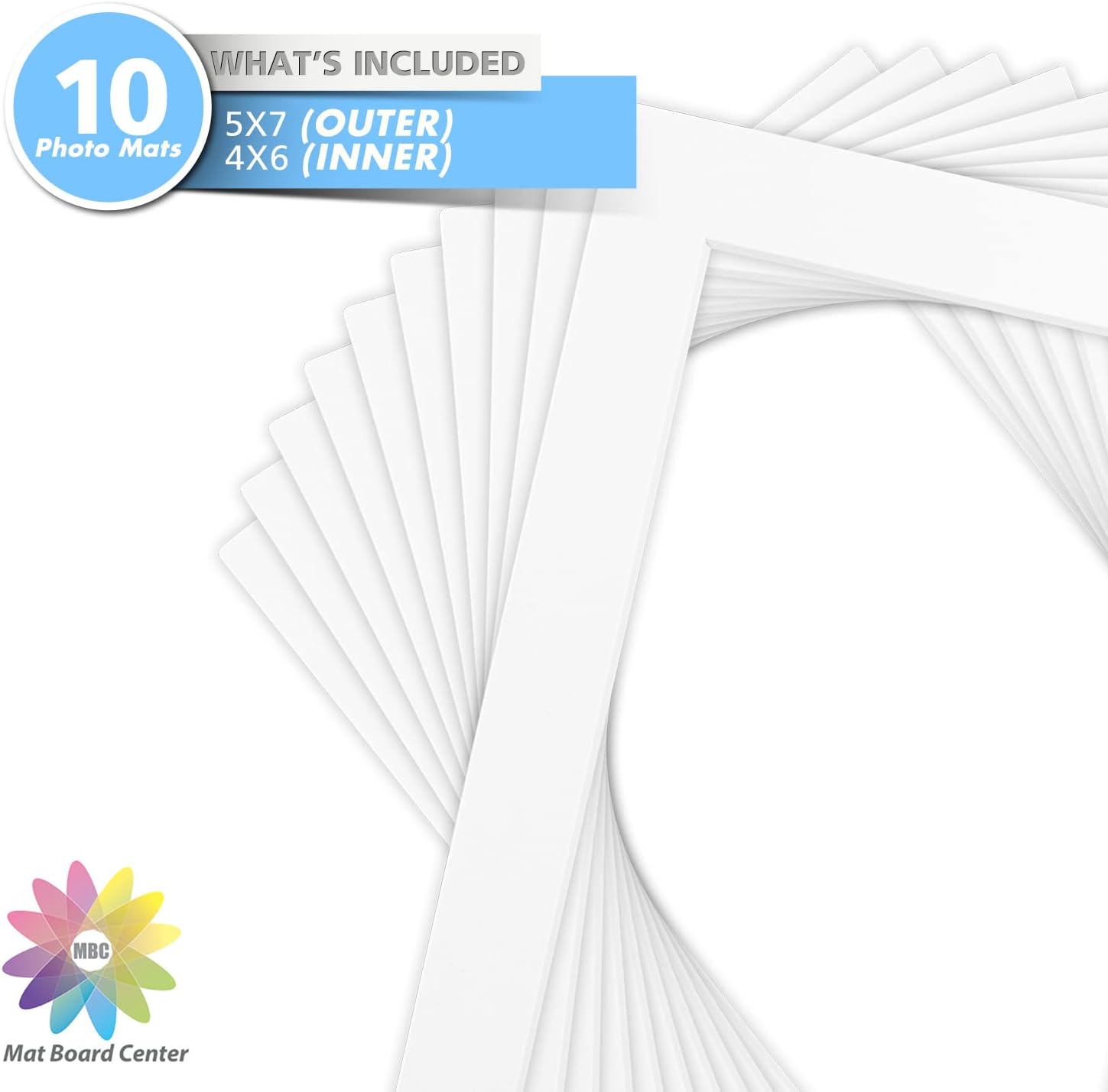 Mat Board Center, Pack of 10, 5x7 for 4x6 Off White Color Mats - Bevel Cut, Acid Free, 4-ply Thickness, White Core - for Pictures, Photos, Framing