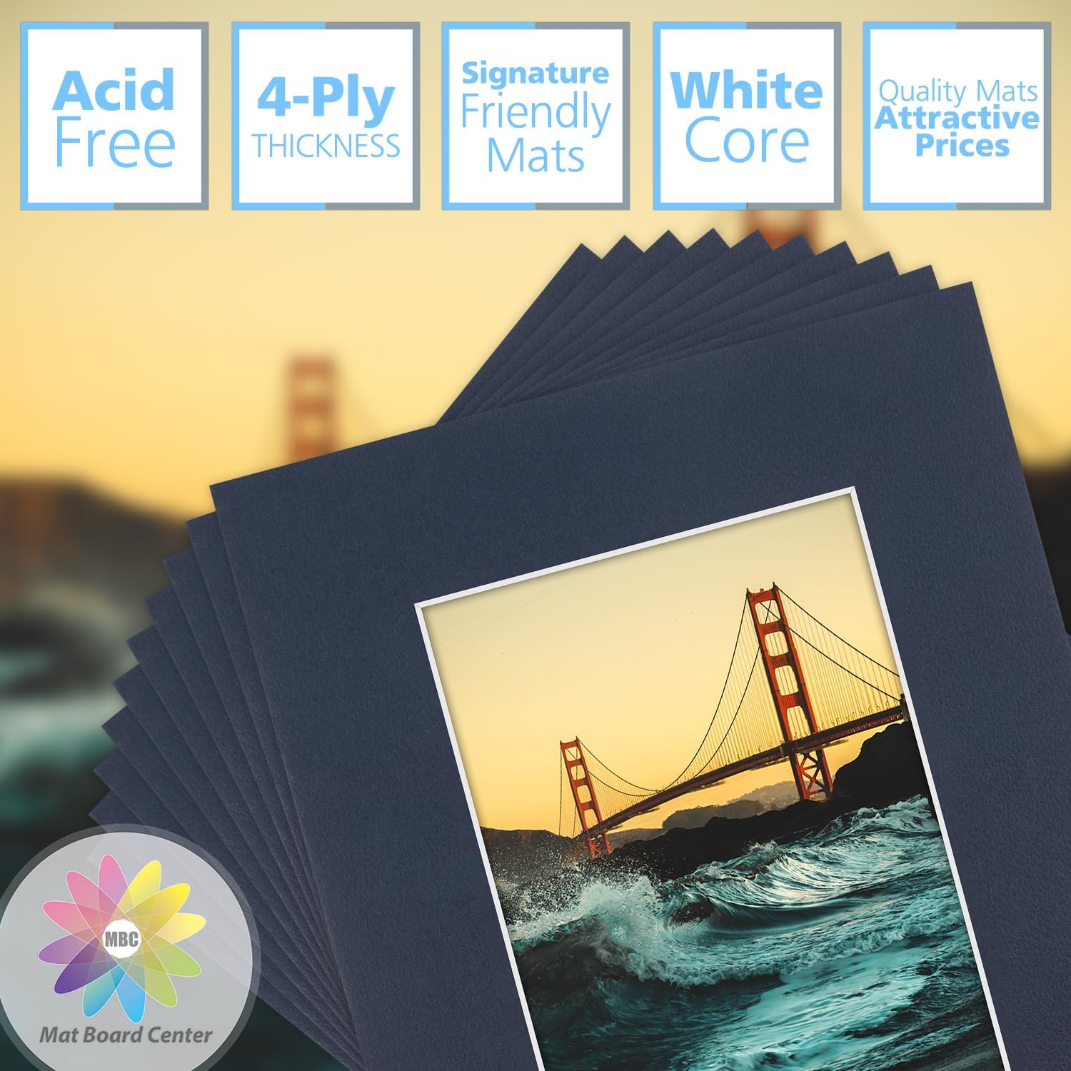 - Pack of 10 Acid-free Precut Dignity Blue Color Mats