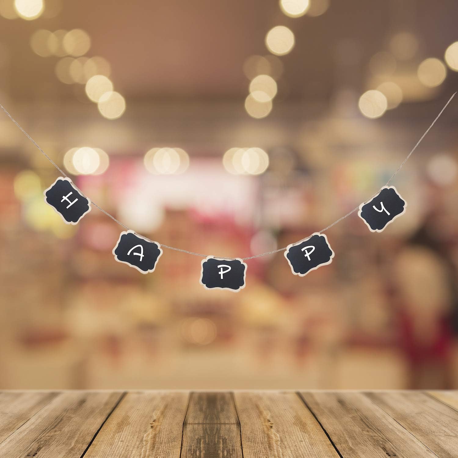 - ❤️ REUSABLE, EASY TO WRITE: Mini chalkboard tags can be written directly with liquid chalk pen or chalk, Message board signs can be erasable and reusable. Black gift tags are suitable for gift boxes, wine bottles, parties, wedding, craft projects, price tags, menu board, home decorate,restaurant, Christmas day, Birthday parties,the label to the daily necessities and so on.