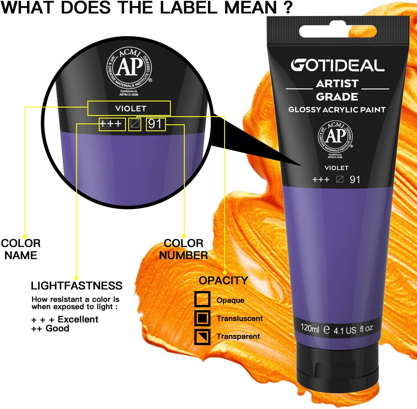 GOTIDEAL Acrylic Paint Violet Tubes(120ml, 4.1 oz) Non Toxic Non Fading,Rich Pigments for Painters, Adults & Kids, Ideal for Canvas Wood Clay Fabric Ceramic Craft Supplies (Violet)