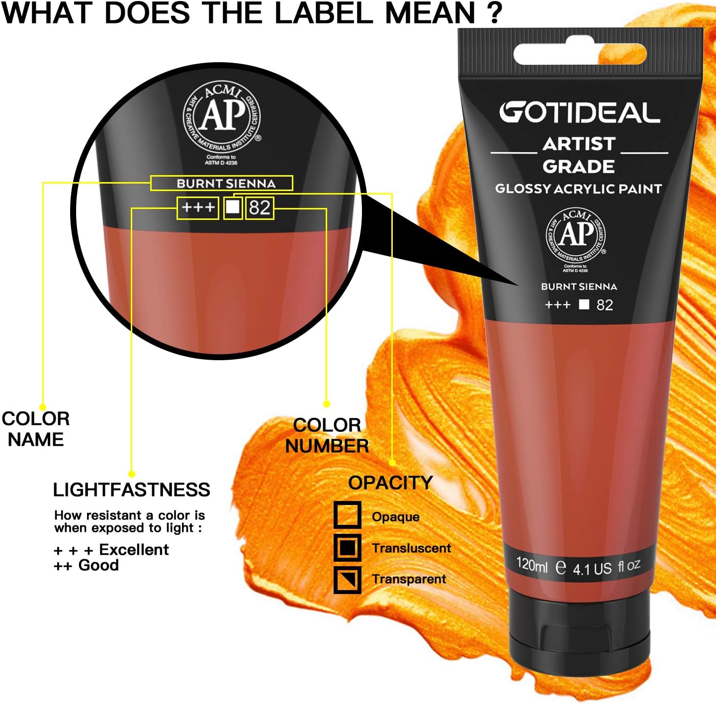 GOTIDEAL Acrylic Paint Burnt Sienna Tubes(120ml, 4.1 oz) Non Toxic Non Fading,Rich Pigments for Painters, Adults & Kids, Ideal for Canvas Wood Clay Fabric Ceramic Craft Supplies (Burnt Sienna)