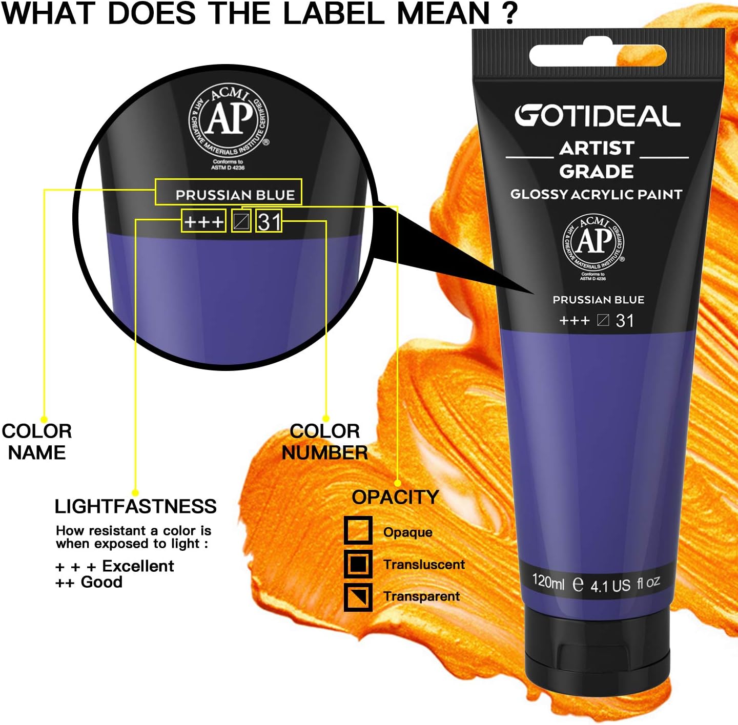- INDDIVIDUALLY LABLED: Each tube is labeled with pigment information including: opacity level, shade's lightfastness rating, color name/number