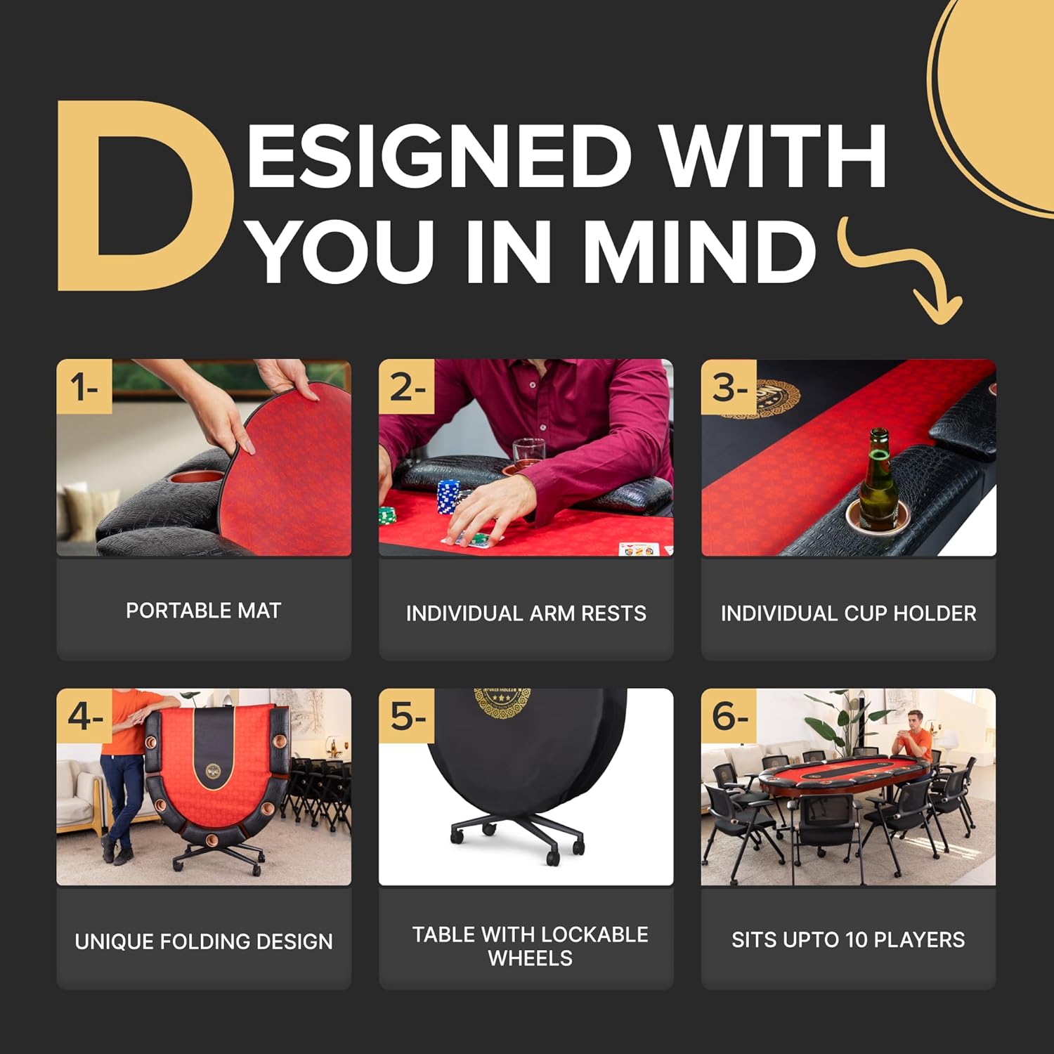 - ๐๐๐ถ๐น๐ ๐ณ๐ผ๐ฟ ๐๐๐ฟ๐ฎ๐ฏ๐ถ๐น๐ถ๐๐ & ๐๐ผ๐ป๐๐ฒ๐ป๐ถ๐ฒ๐ป๐ฐ๐ฒ: This foldable poker table 10 player features a reinforced frame with a stable design, ensuring long lasting use. The unique folding mechanism allows easy storage, making it ideal for both casual and competitive games on a collapsible folding table.