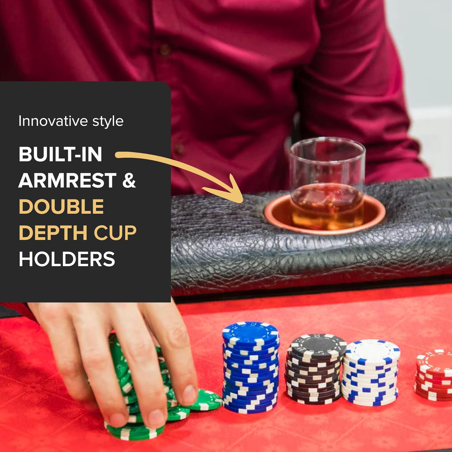 - ๐๐ป๐ต๐ฎ๐ป๐ฐ๐ฒ๐ฑ ๐๐ฎ๐บ๐ฒ๐ฝ๐น๐ฎ๐ & ๐๐ผ๐บ๐ณ๐ผ๐ฟ๐: Enjoy smooth card slides on the premium spill-resistant felt of this poker game table top. The individual padded armrests add comfort for marathon sessions, while the integrated cup holders ensure a clutter-free play area perfect for a true poker table top experience.