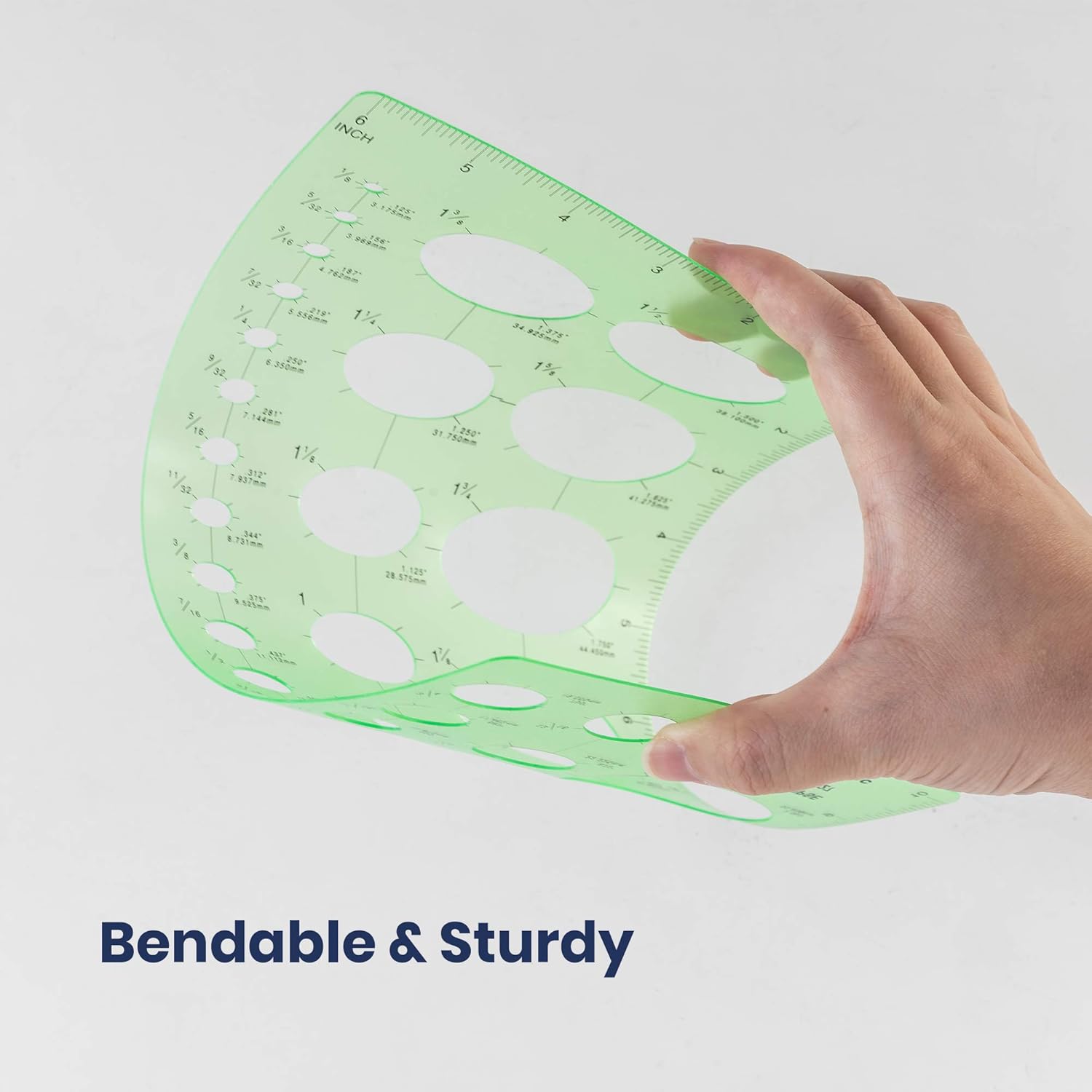 - COMPREHENSIVE TEMPLATE - This template contains 27 ellipses ranging from 1/8 inch to 2 inches. Features two rulers, one with 6 inches and another with 10 inches. Ideal for any student, engineer, or artist.
