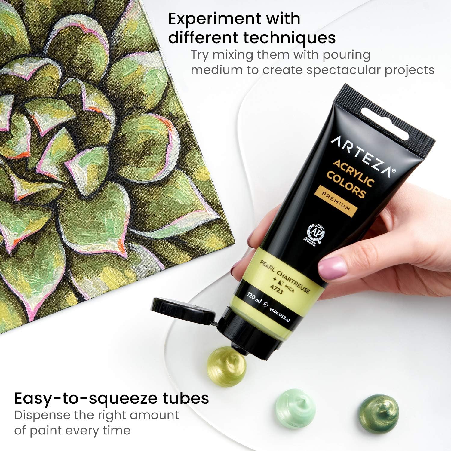 Arteza Metallic Acrylic Paint, Set of 8 Floral Brilliance Colors 4 oz Tubes, Rich Pigments, Non Fading, Non Toxic Paints for Artists & Hobby Painters