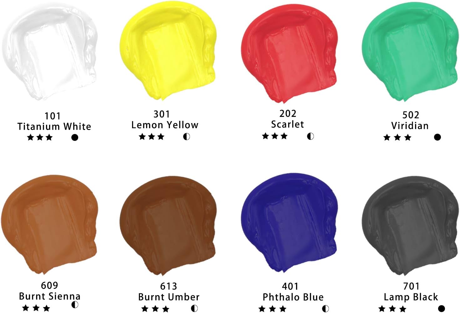 - Artecho 8 colors Acrylic paint set 4.05oz/120ml tube-Titanium White/Lemon Yellow /Scarlet/Viridian/Phthalo Blue/Burnt Sienna/Burnt Umber/Lamp Black