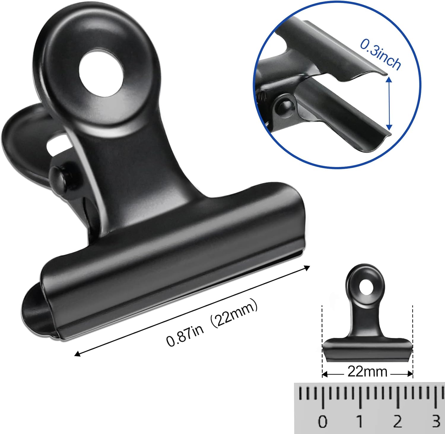 30 Pack Bulldog Clips 0.87 Inch Small Hinge Paper Clips Metal Hinge Clips for Crafts, Food Bags, Drawings, Photos at Home Kitchen & Office Usage, Black, 22mm