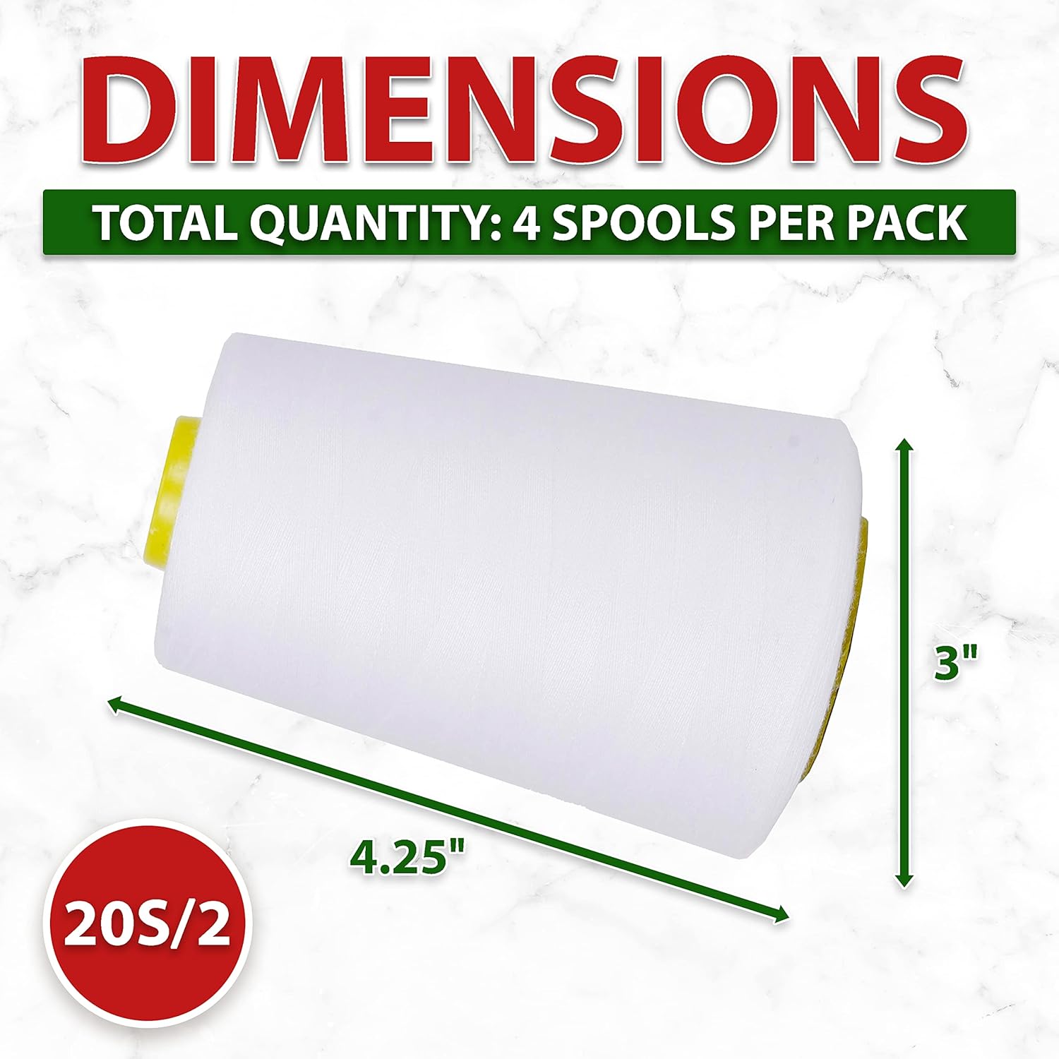 - Bulk White Polyester Serger Spools Thread Sewing Supplies Kit: Each 4.25 x 3 x 3 in cone of thread is 6000 yards long. The 20wt all-purpose sewing thread serve as heavy duty cone serger thread for sewing machine for both residential and commercial use.