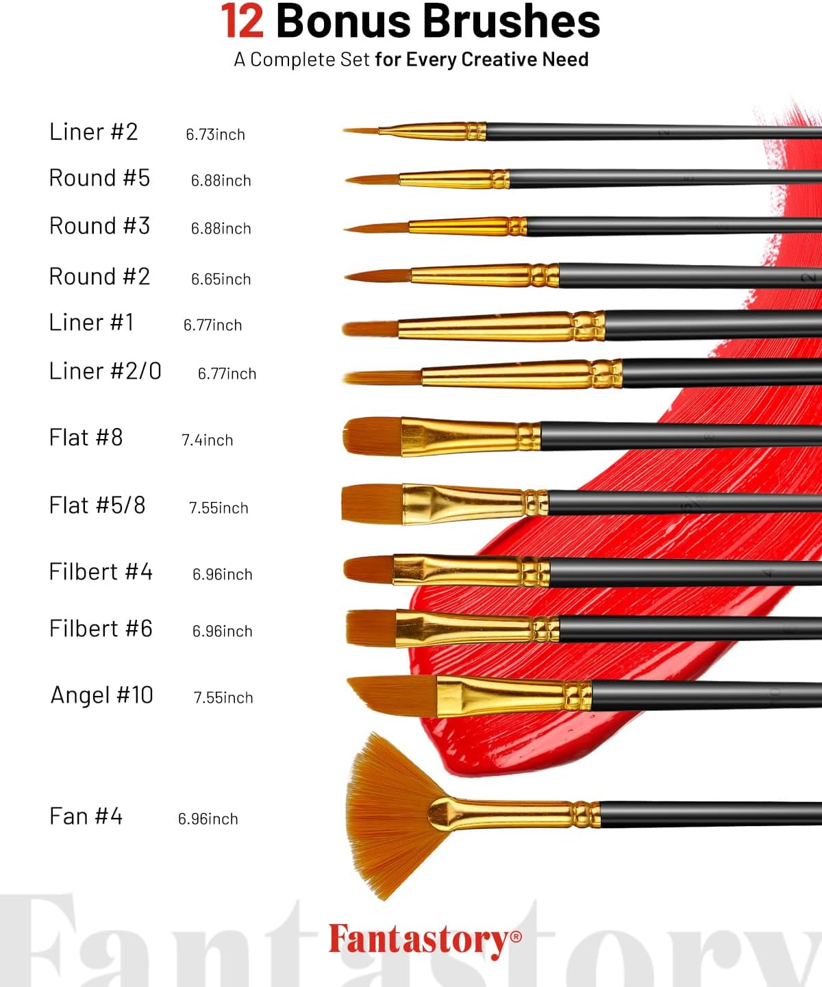 Fantastory Acrylic Paint Set, 24 x 60 ml with 12 Brushes; Christmas Acrylic Paint, Waterproof; For Artwork & DIY Projects on Canvas, Wood, Glass, Clay, Fabric, Ceramic, Paper, Canvas
