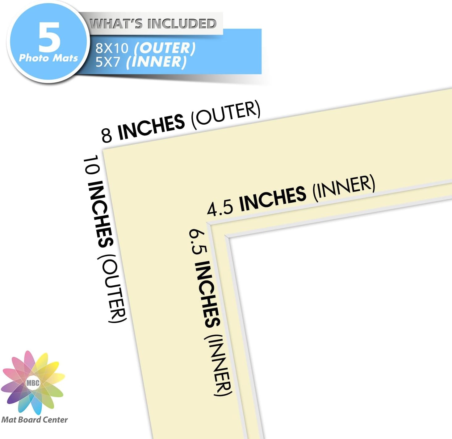 Mat Board Center, Double Mat - Acid Free, 8-ply Thickness, White Core - for Pictures, Photos, Framing (Ivory Over Ivory, 8x10 for 5x7, Pack of 5)