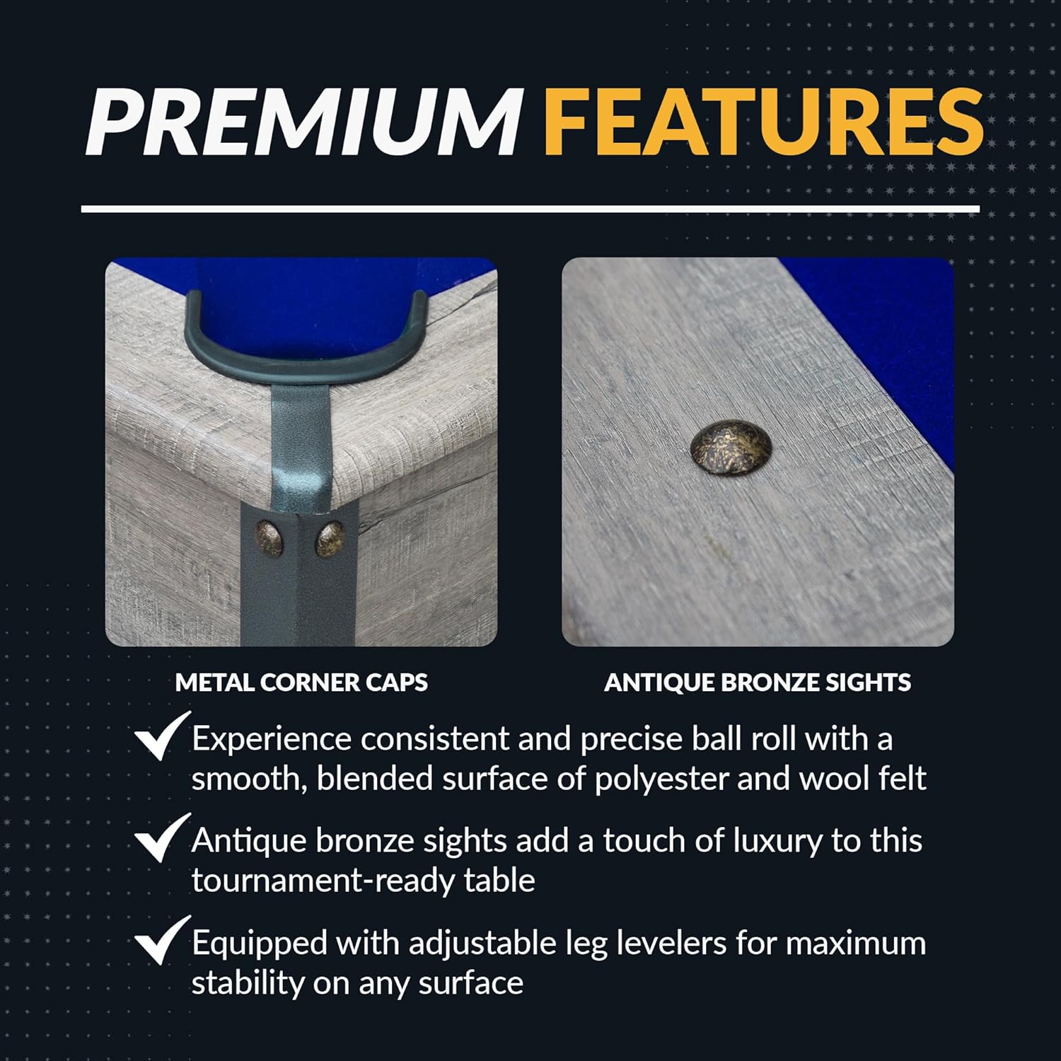 - TOURNAMENT-STYLE PLAYFIELD β The Logan dining, ping pong, and billiards table combo features blended wool and nylon blue felt, K-66 gum rubber cushions for precision bounce, and antique bronze inlaid sights for perfect shot alignment.