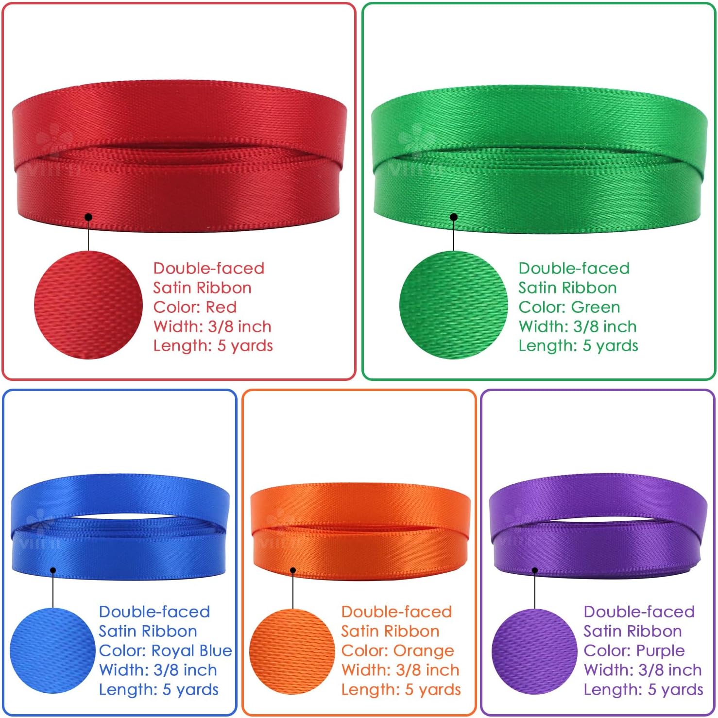 - Asst. comes in: 3/8 inch wide, 5 yards each roll by the spool, total 50 yards.