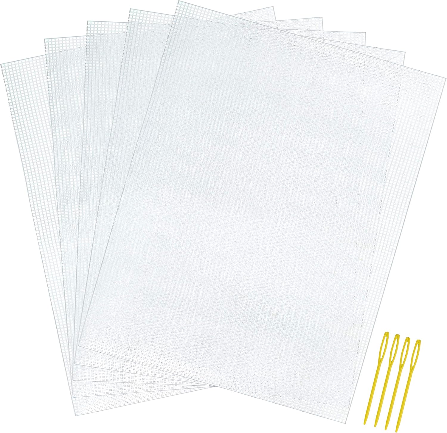 Pllieay 5 Pieces 7 Count Plastic Mesh Canvas Sheets, Eye Mesh for Embroidery, Acrylic Yarn Crafting, Knit and Crochet Projects, Make Aquarium Dividers(10.2 x 13.2 inch, with 4 Pieces Weaving Needles)
