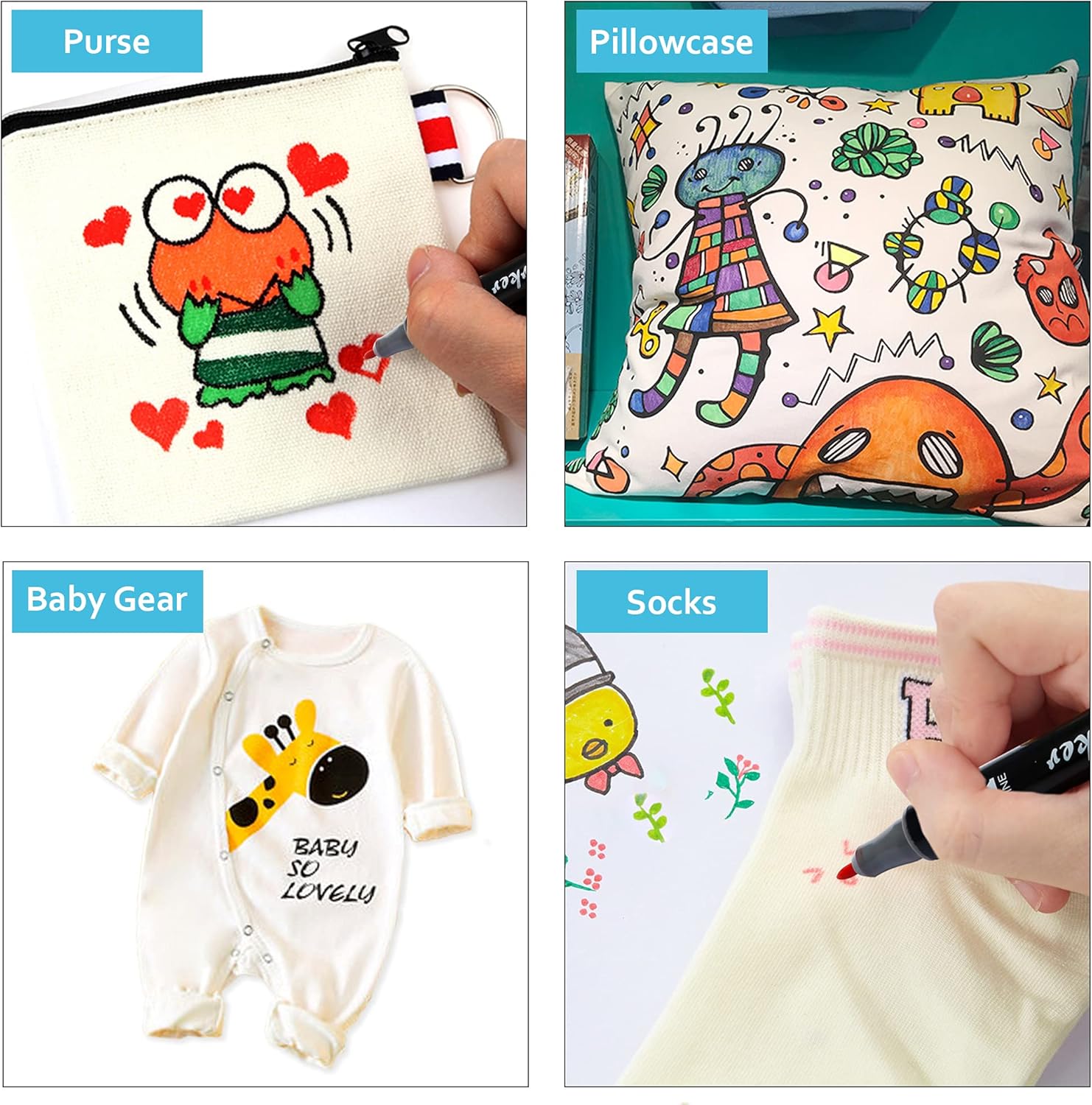 - VERSATILE USES: Premium quality fine tip fabric markers work on all type of light-colored fabrics like T-shirts, canvas, socks, hats, bags, baby gears and more. Itโs really a great art and craft supplies for kids!