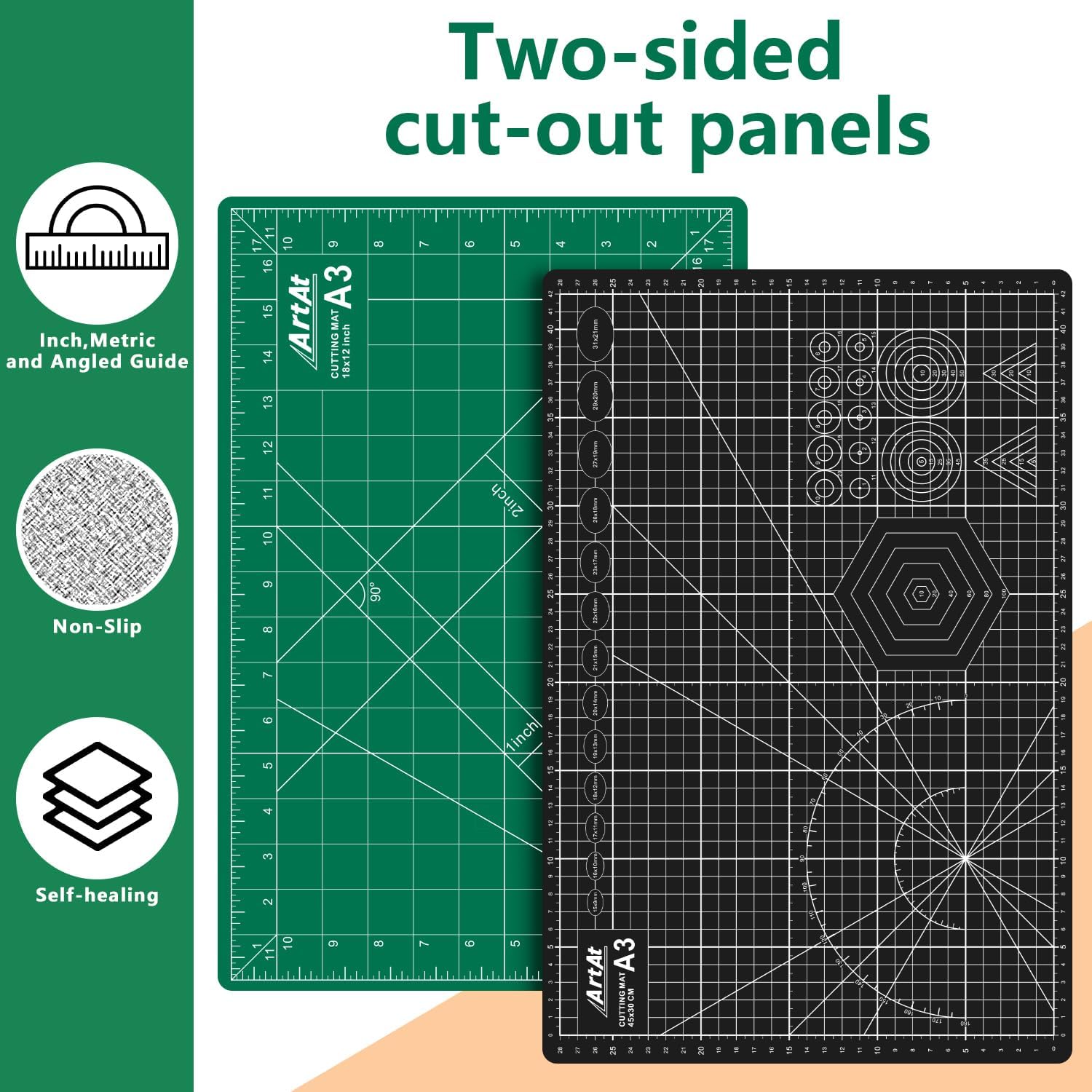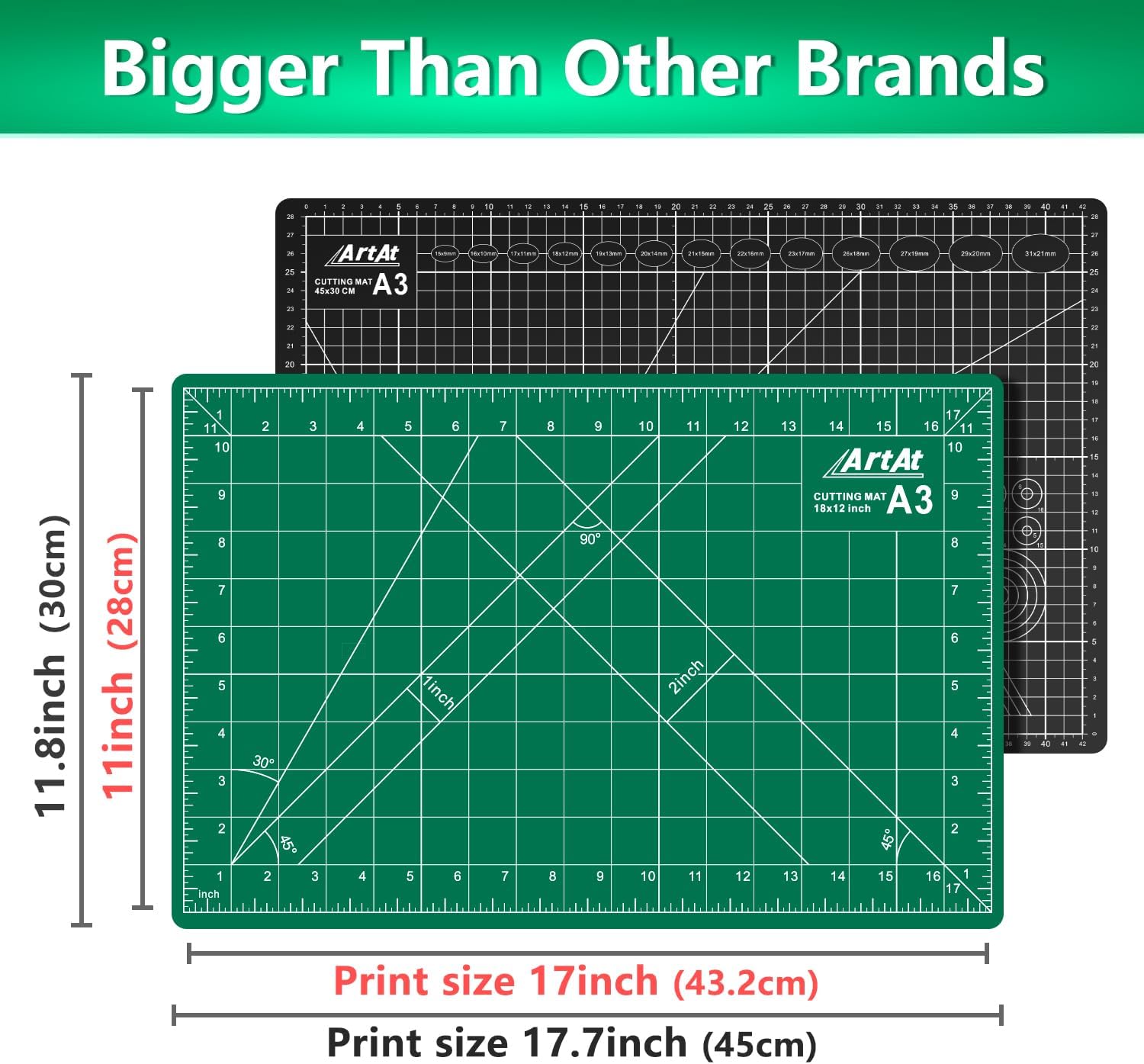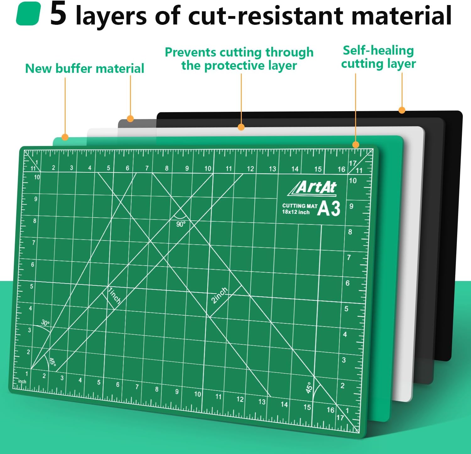 - 【A3 CUTTING MAT】Our cutting mat boasts a durable 5-ply self-healing design, complete with 1/2" grid and 1/8" marks for precise alignment, 30° 45° 60° 90° guides, and diagonal cutting lines.