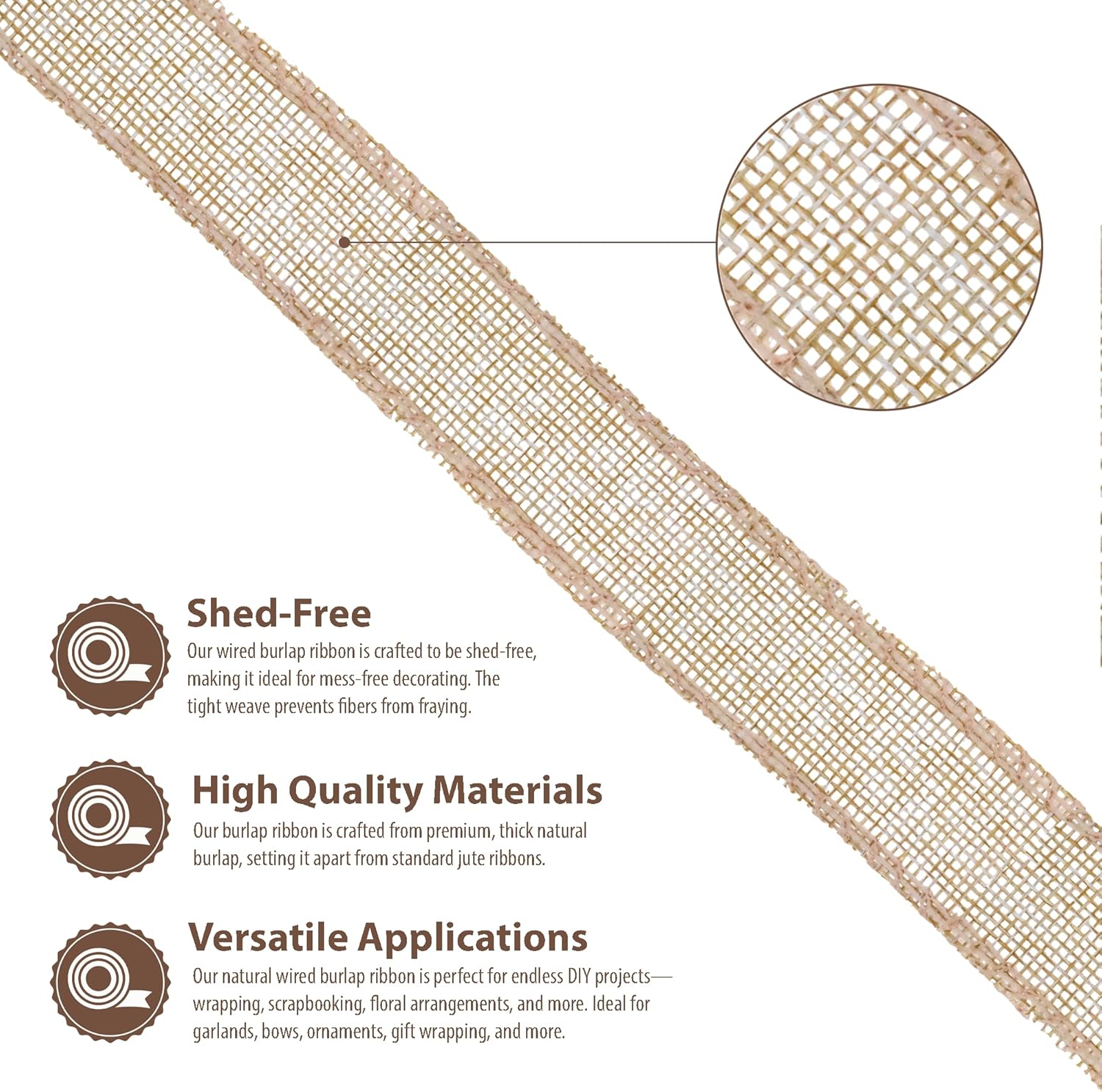 - Burlap Natural Wired Ribbons for Wrapping, DIY, Scrapbooking, & Floral Arrangement: The wired rustic ribbon is the ideal colored burlap fabric for garlands, bows, flowers, cards ornaments & curtain tiebacks and gift wrapping ribbon for boxes & baskets.