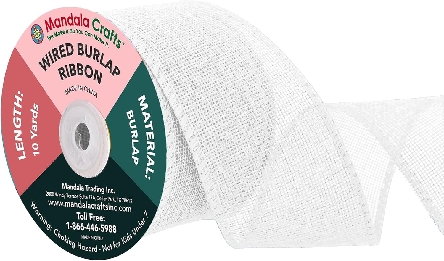 - Bulk Burlap Ribbon White Linen Ribbon: The continuous 2.5 in colored burlap roll is 10 yards long. The wired burlap ribbon bulk pack is handy to decorate trees and mason jars or hang pictures.