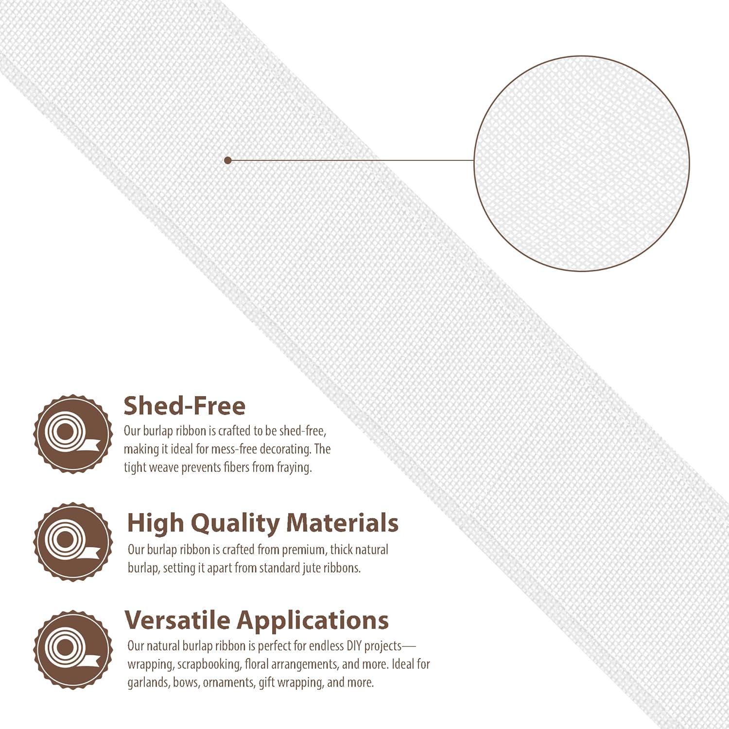 - Wired Burlap Ribbon: Compared to other jute burlap ribbons, our rustic burlaps ribbon with a fray & shed-resistant hemmed edges is made from thicker white burlap fabric. The indoor & outdoor colored burlap crafts ribbon is colorfast and will not bleed.