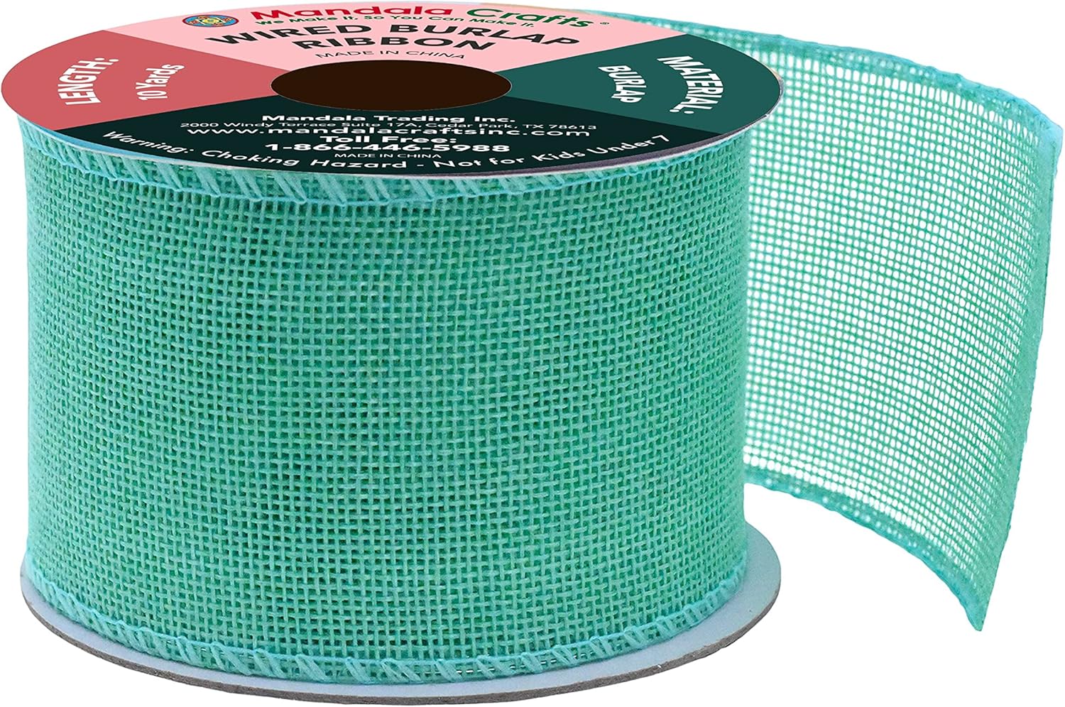 Mandala Crafts Turquoise Burlap Wired Ribbon 2.5 Inches Wide Jute Ribbons for Crafts - 10 Yds Roll Rustic Burlap Wrap Trim Ribbons for Wreaths Bows Party Decoration