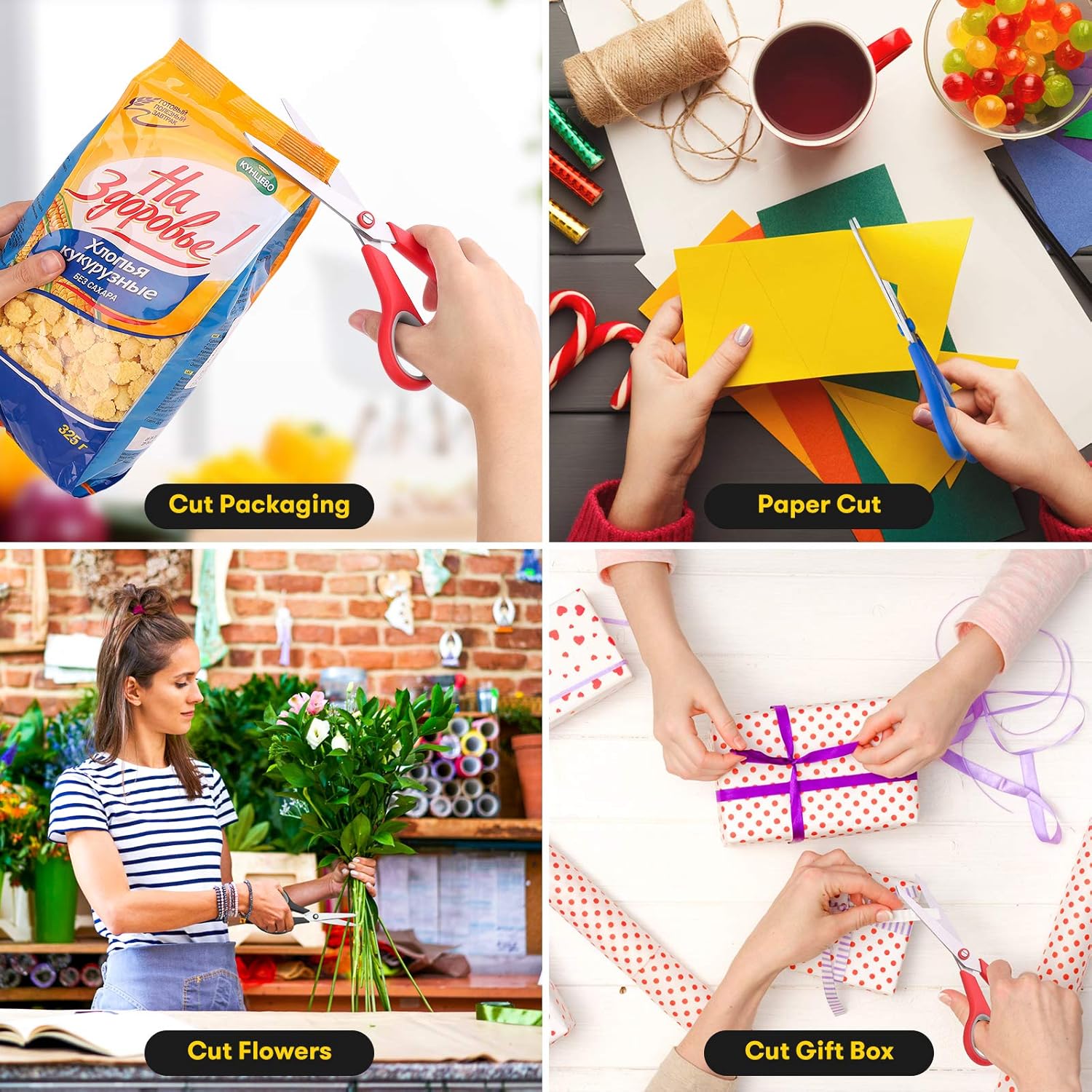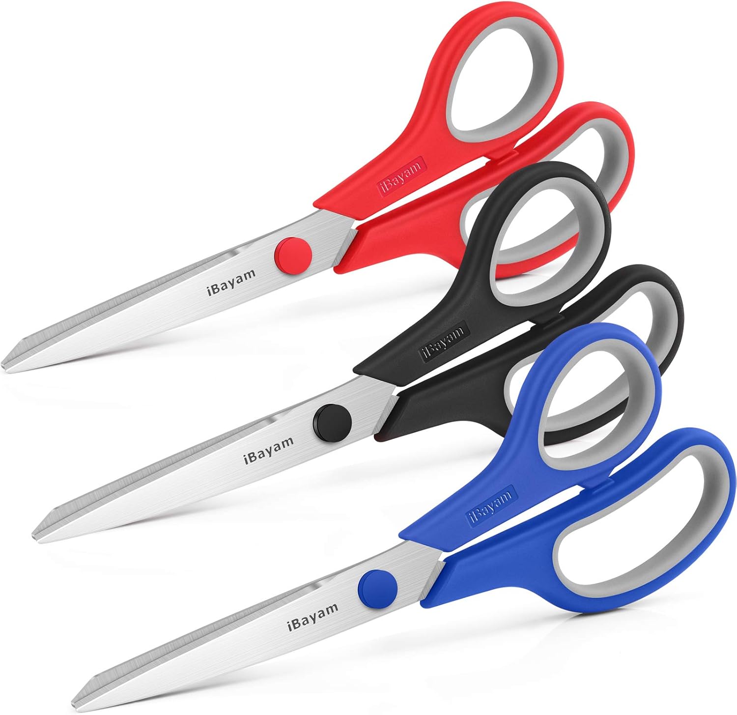 - iBayam 8-Inch Comfort-Grip Scissors -- 3 special scissors are suitable for most items that need to be cut. It can also be used as a household scissors for cutting open frozen food bags ready for cooking. Convenient, sturdy, especially sharp scissors, very durable.
