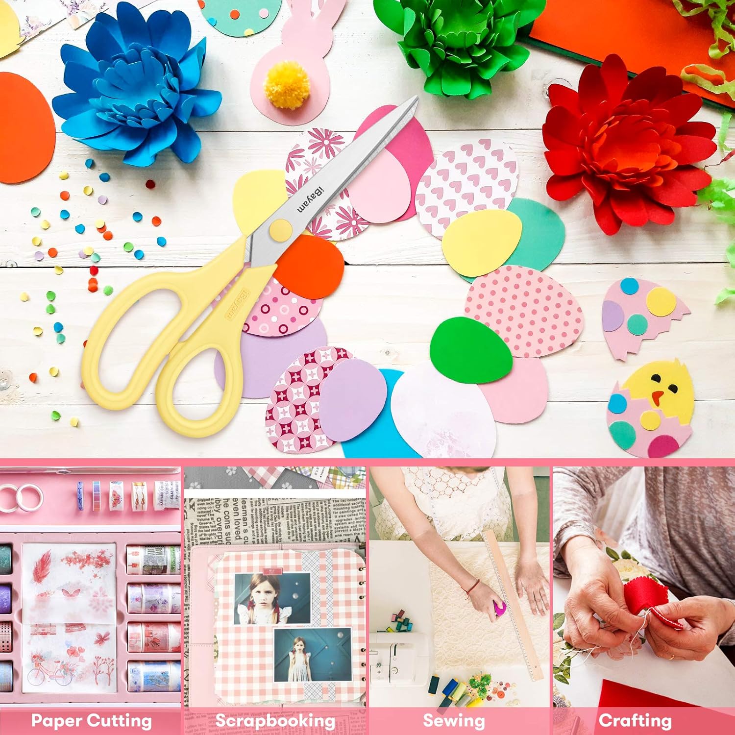 - Great for cutting burlap, paper, card stock, cardboard, wrapping paper, light line, fabric, tape, photos, coupons, and opening boxes & packaging. Surprised for sewing, tailoring, quilting, dressmaking, cutting patterns, cutting quilting, Vinyl, Leather, and making face masks. Exceptional scissors for multiple uses in various rooms, in the Handcraft Workshop, bathroom, sewing room, laundry room, craft room, at the office, great for most regular household tasks.